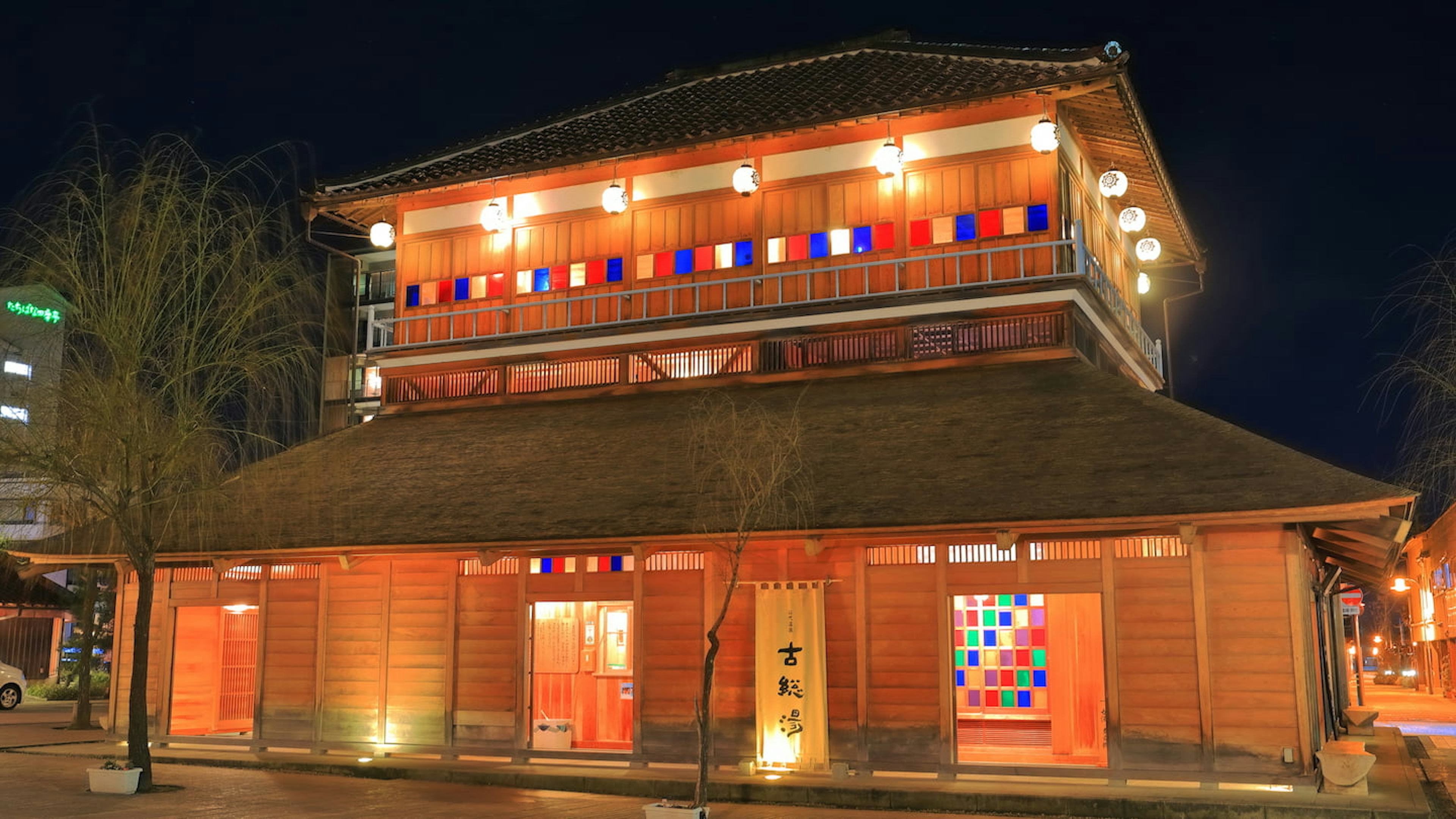 山代温泉は約1,300年の歴史を持つ温泉地。三本足のヤタガラスが発見したという伝説が残っています。総湯と呼ばれる共同浴場を中心に温泉宿や商店が立ち並ぶ湯の曲輪(ゆのがわ)という街並みが特徴。加賀温泉郷の中でも昔ながらの温泉文化が色濃く残る温泉地です。人気は明治19年築の総湯を復元した古総湯(こそうゆ)。柳に囲まれたこけら葺き屋根の外観だけでなく、湯あみという入浴方法も再現しています。