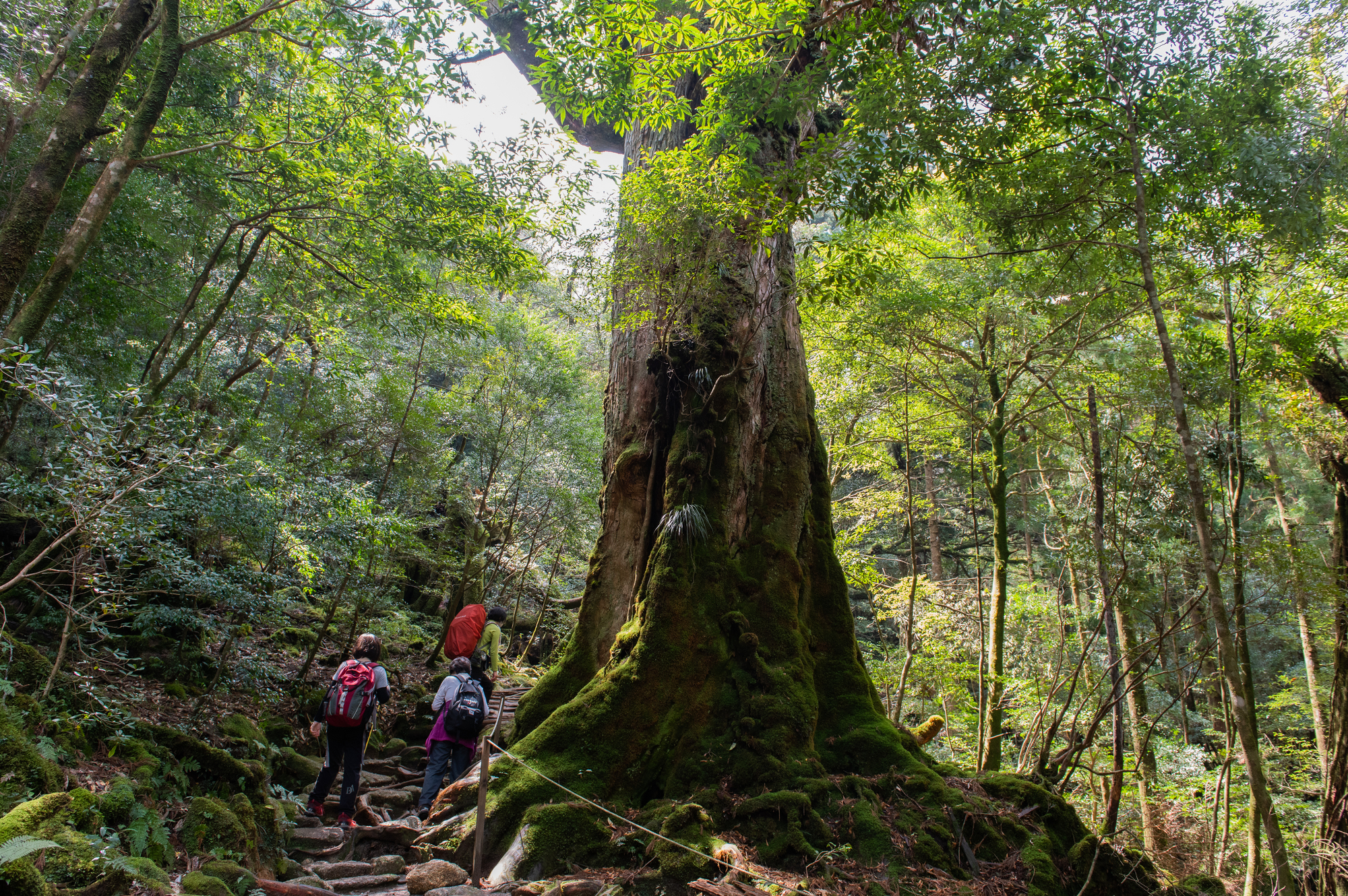おすすめポイントは、樹齢3000年の「仏陀杉」や「夫婦杉」など、個性豊かな屋久杉たちとの出会い。ただし、木道は滑りやすいので、歩きやすい靴の着用をおすすめします。