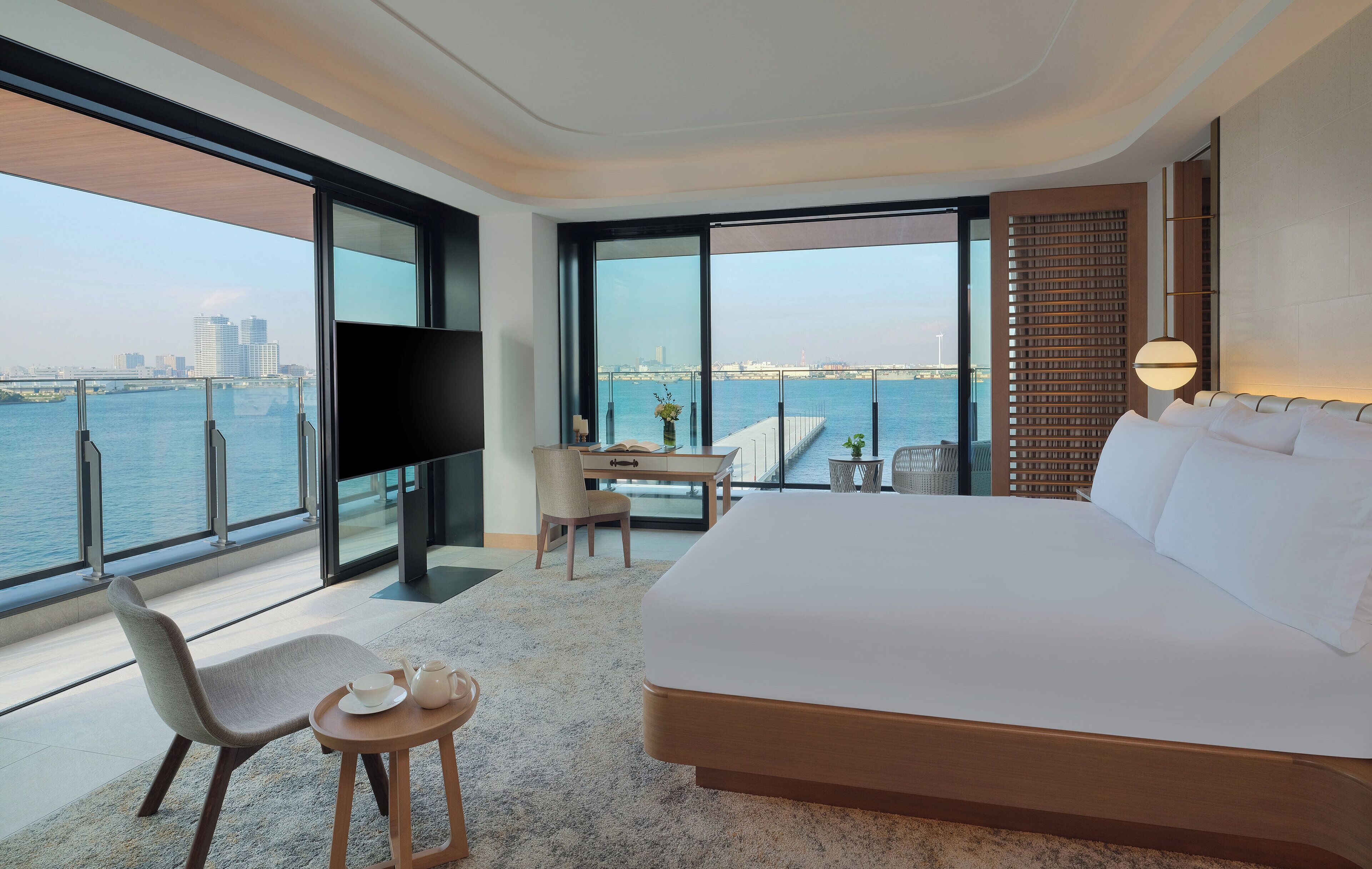 ゆったりとした設えのゲストルームは全室が46㎡以上というぜいたくな広さです。インテリアのテーマは船旅。開放的な海の景色を望み、光と風を取りこむこれまでにない新しい空間となっています。