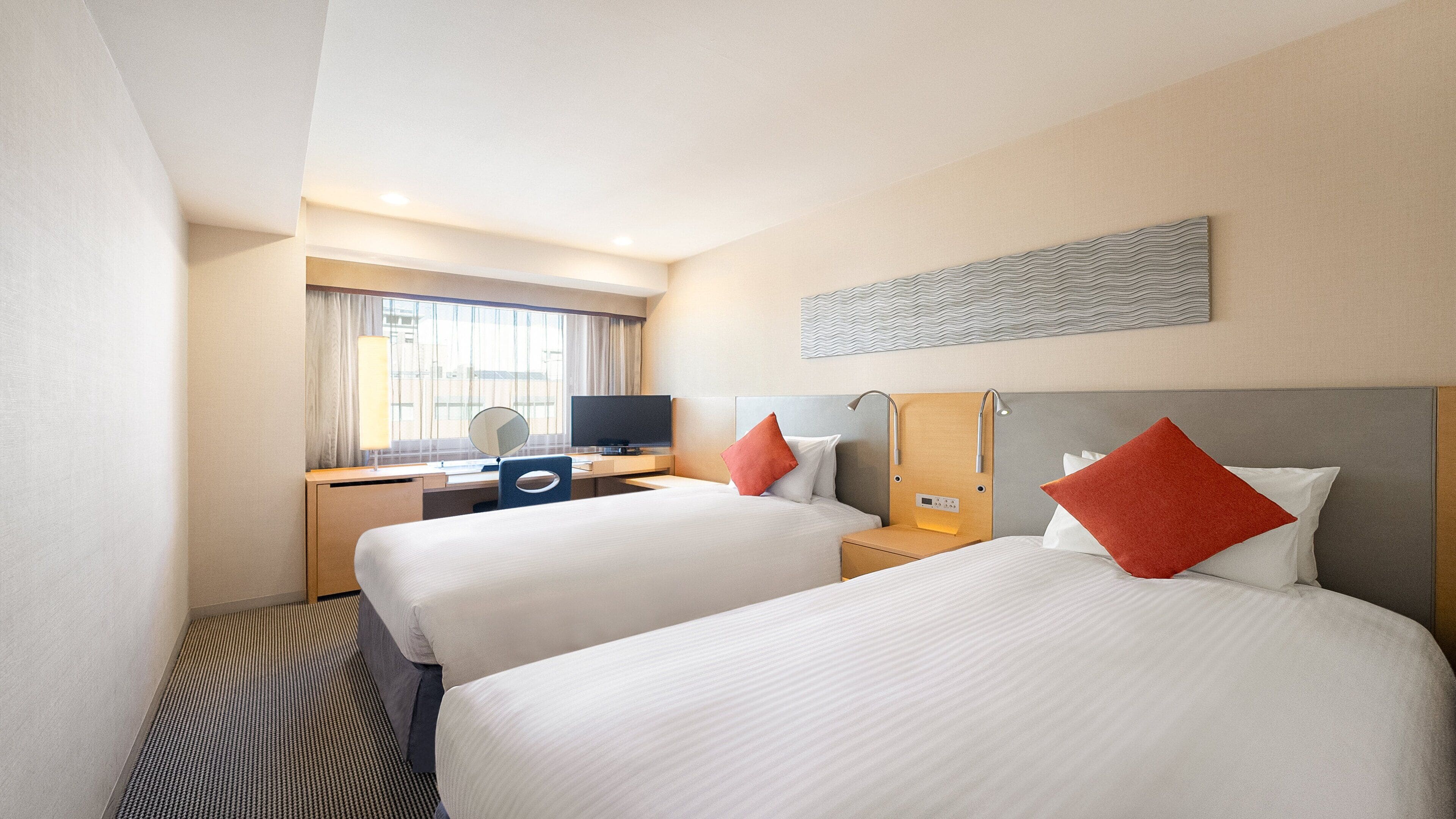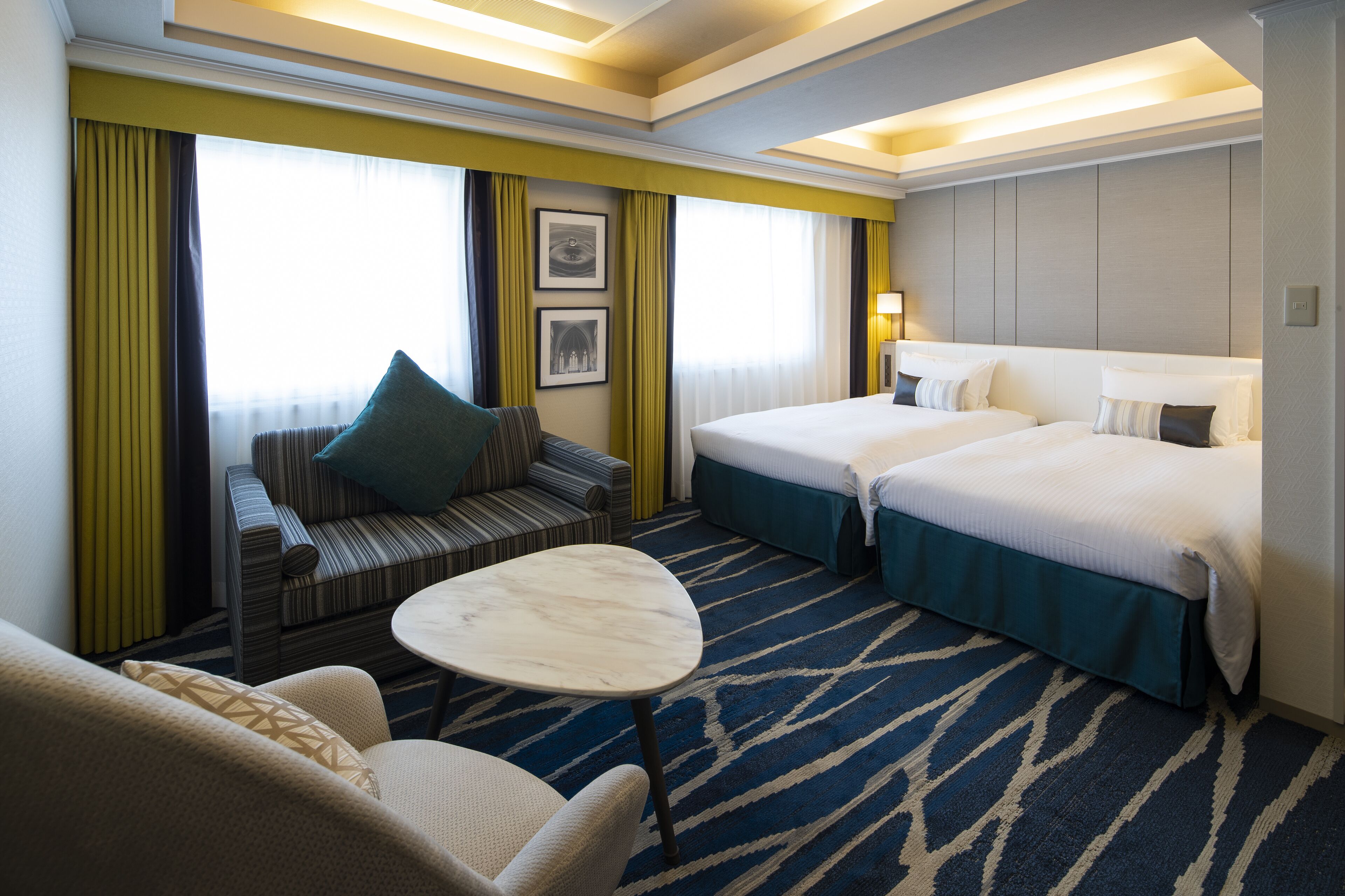 客室は13階から19階。床から天井まで一面に広がる大きな窓が特徴で、開放感あふれる空間となっています。内装は上品で都会的な雰囲気。用途に応じてさまざまなタイプの部屋が用意されています。