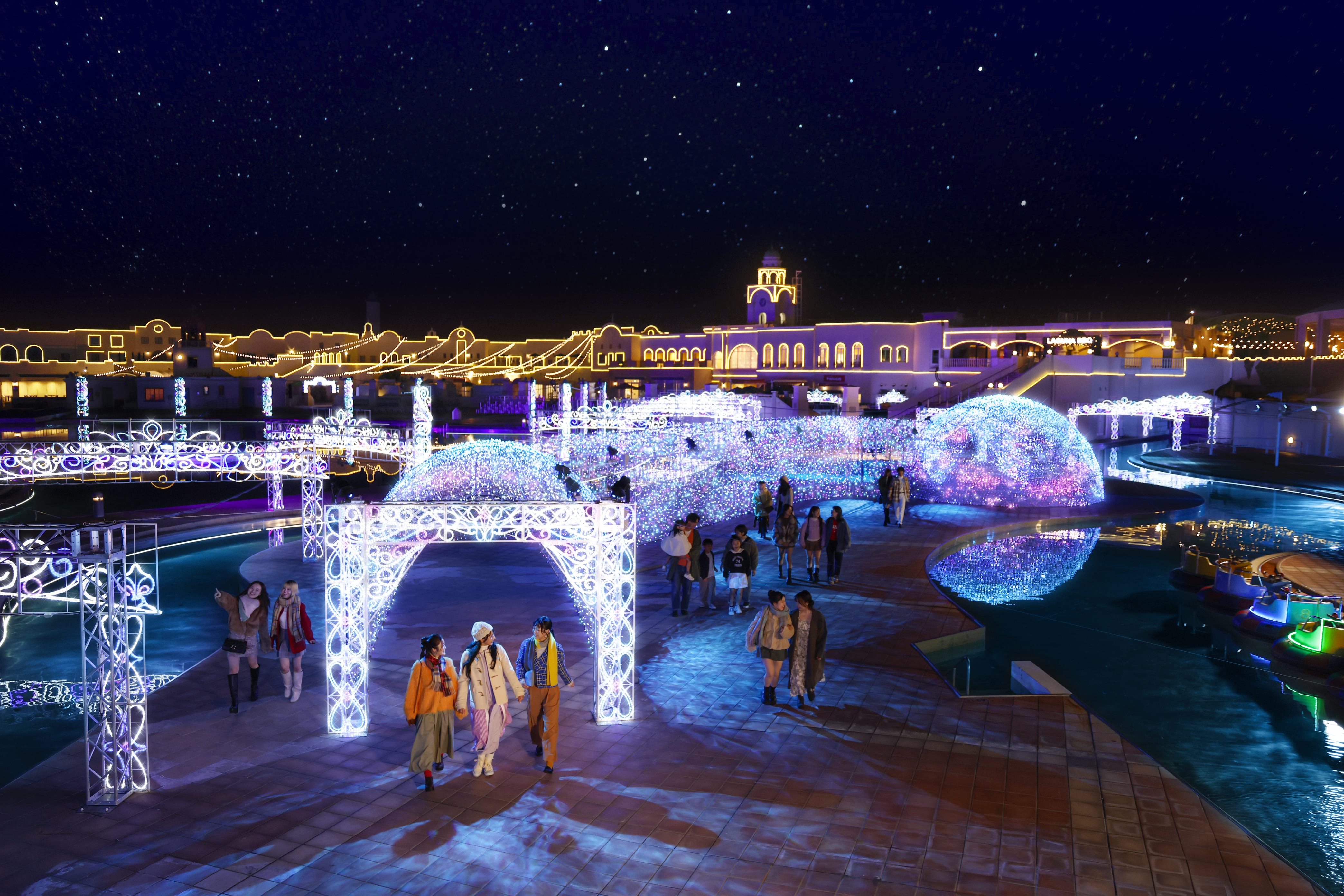 「光」と「水」の幻想的な世界を演出するイルミネーションドーム「マリンファンタジア」や神秘と水の世界を演出する水上ドローン&イルミネーションショー「光の花手水」など、冬を彩る美しい光の演出が園内を美しく照らしています。園内のアクティビティも充実しており、クリスタルアーチがかかる水上をバンパーボートで周遊する体験など、光を見るだけでなく、冬のリゾート全体を楽しむ仕掛けが充実しています。
