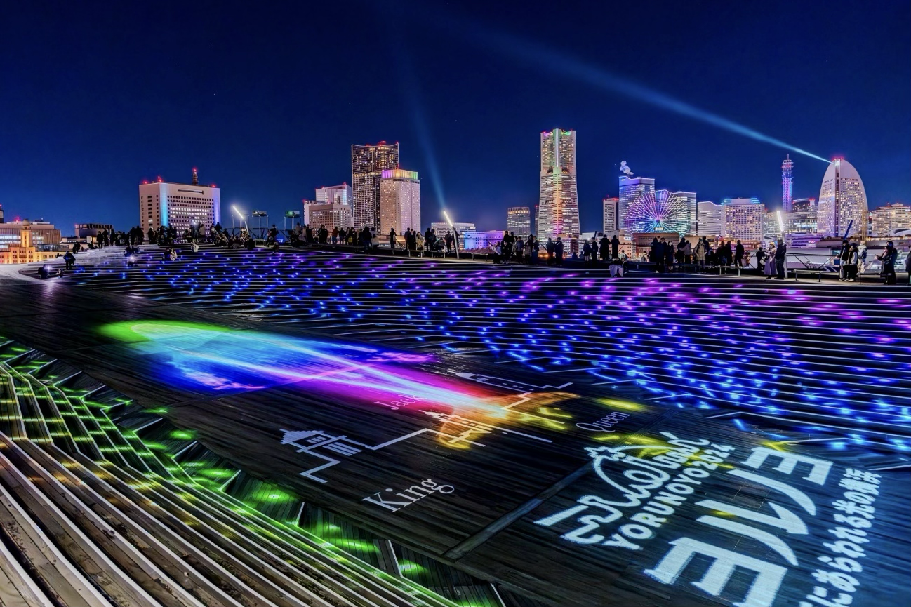 2025年の横浜の光の演出は、都市全体を舞台にした未来志向のスペクタクルへと進化しました。国内最大級の都市連動型イルミネーション「ヨルノヨ2025」では、みなとみらいから山下公園までの3km以上を結び、過去最多となる46施設が光と音楽で同期するショーを展開します。この圧倒的な規模の演出は、光による「共創」と「未来への希望」という強いメッセージを放っています。また、山下公園会場では、人の動きに反応して光が動く全長250メートルのインタラクティブ・デジタルアートが展開され、来場者が光のアートの一部となる没入体験を提供します。