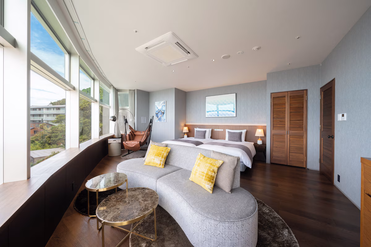 葉山の自然に染まるスイート。窓一面の海をふたりじめ
