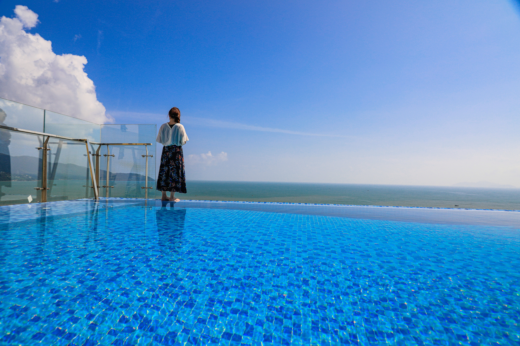 目線と同じ高さに水平線が広がる、海と一体になれるスパ