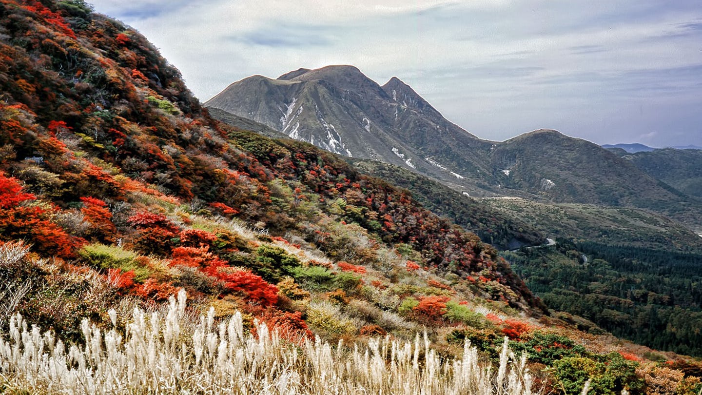 10月中旬から下旬にかけて、阿蘇地域は美しい紅葉の季節を迎えます。特におすすめなのが、阿蘇五岳を一望できる大観峰です。