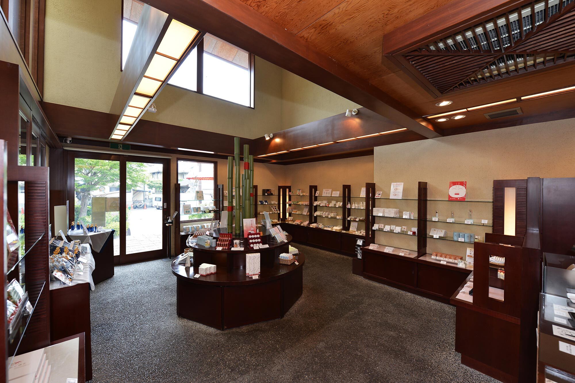 「よーじや 嵯峨野嵐山店」は、京都土産の定番「あぶらとり紙」で知られるライフスタイルブランド「よーじや」のショップとカフェが併設された店舗です。ショップでは、看板商品のあぶらとり紙はもちろん、スキンケアアイテムやオリジナルの雑貨など幅広い商品が揃っており、お土産えらびに最適です。
