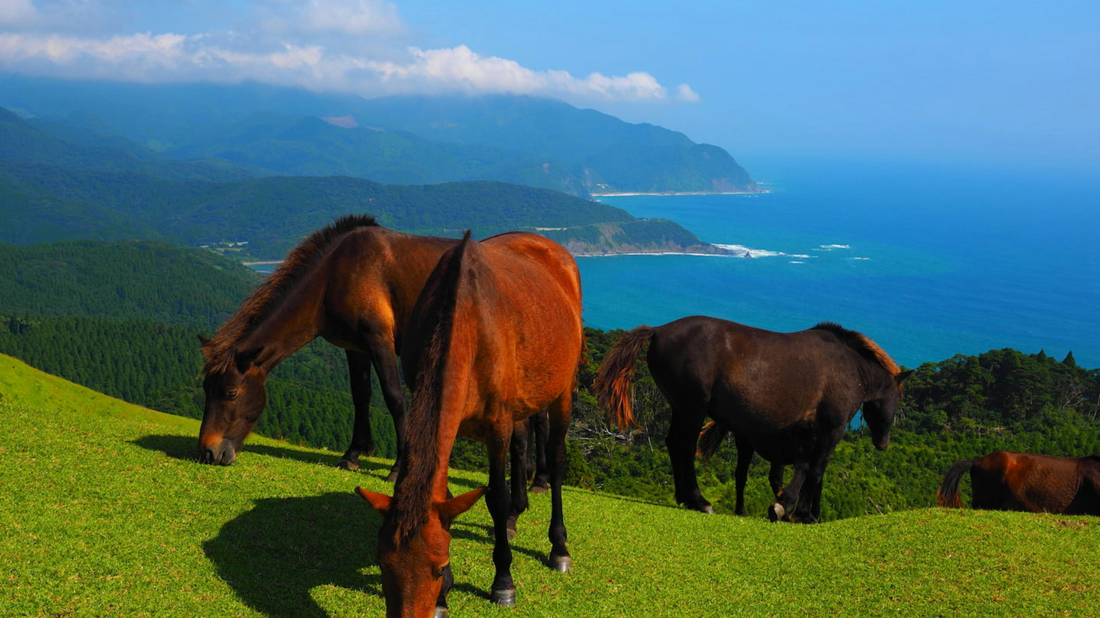 また戸井岬は、日本の在来馬の一種・御崎馬(みさきうま)でも有名。この馬は江戸時代に高鍋藩が放牧したのがはじまりという野生馬で、国の天然記念物にも指定されています。4月から5月にかけては、春駒(はるこま)と呼ばれる仔馬が産まれるシーズンなので、とくにおすすめですよ。