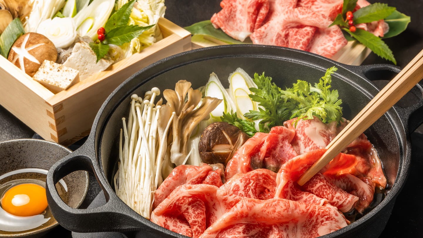 やわらかい肉質と上品な脂肪、ゆたかな香りを存分に味わえるのが、すき焼き。松阪駅周辺には古くから松阪牛のすき焼きを提供する老舗がたくさんあります。