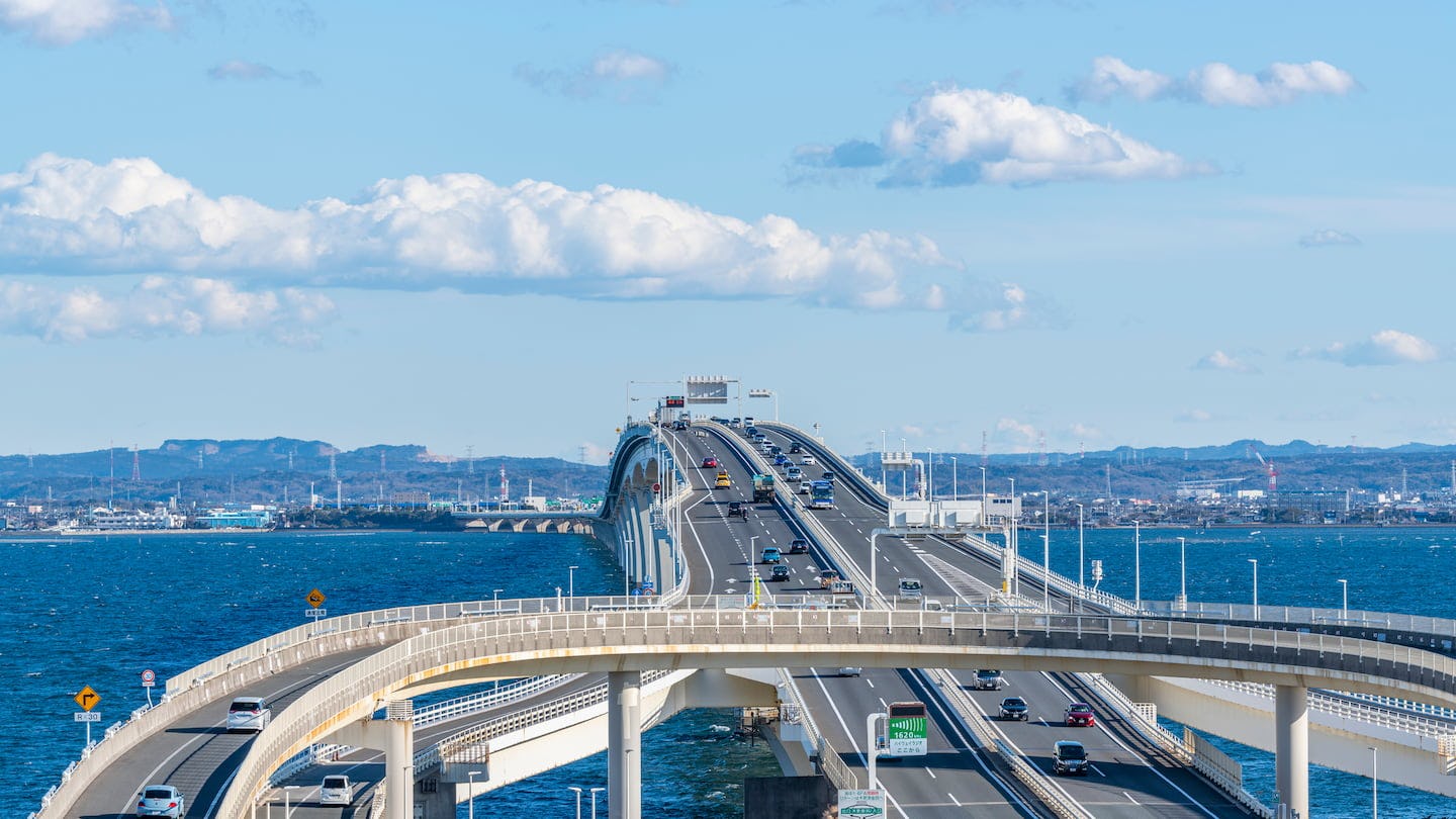 東京湾アクアラインは、神奈川県川崎市と千葉県木更津市を結ぶ延長約15.1キロメートルの有料道路。東京湾を横断する関東を代表するドライブルートのひとつです。