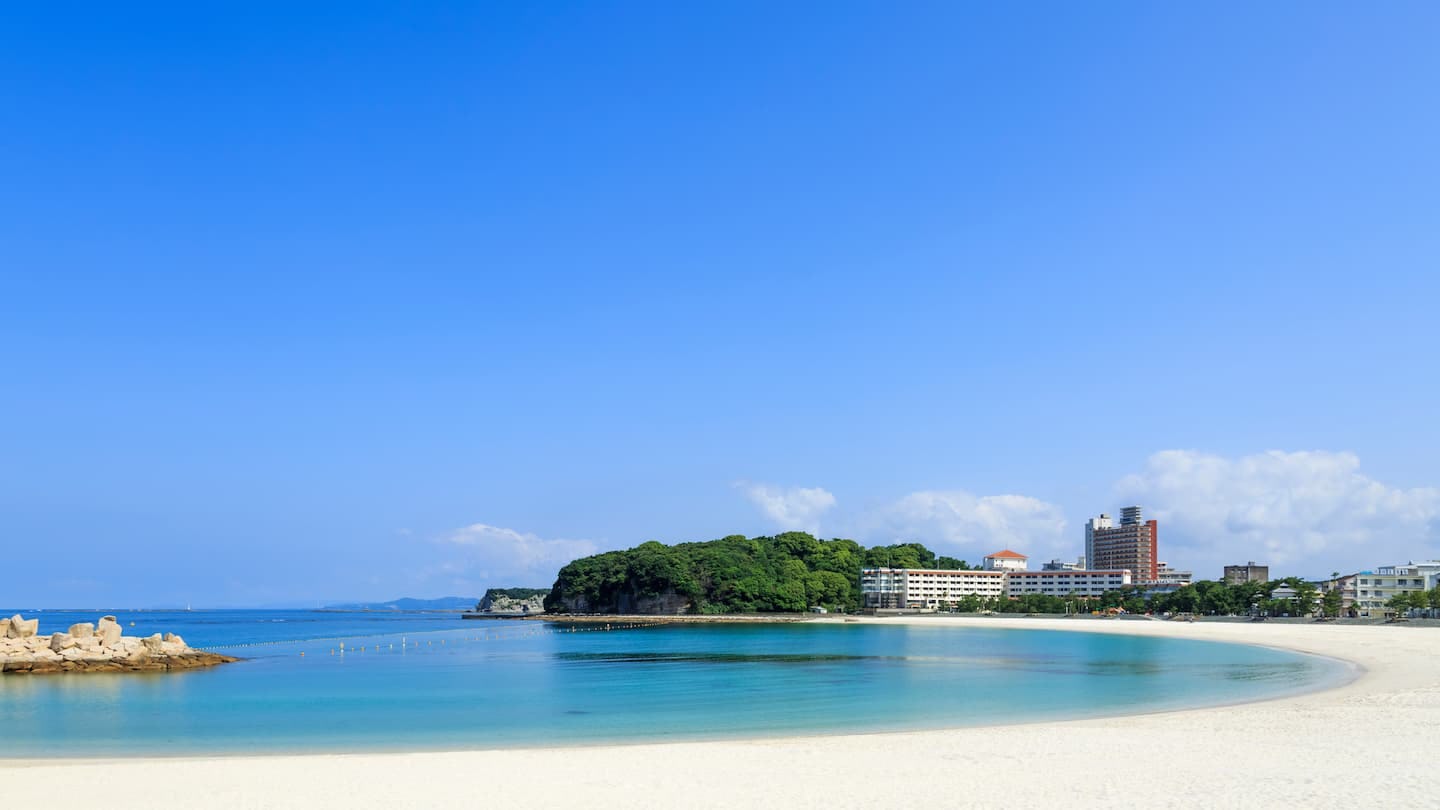 真っ白な砂浜とエメラルドグリーンの海が広がる「白良浜」は、日本の快水浴場百選にも選ばれ、年間60万人以上が訪れる人気スポットです。ビーチヨガや花火などのイベントも開催され、子供から大人まで楽しめる場所となっています。