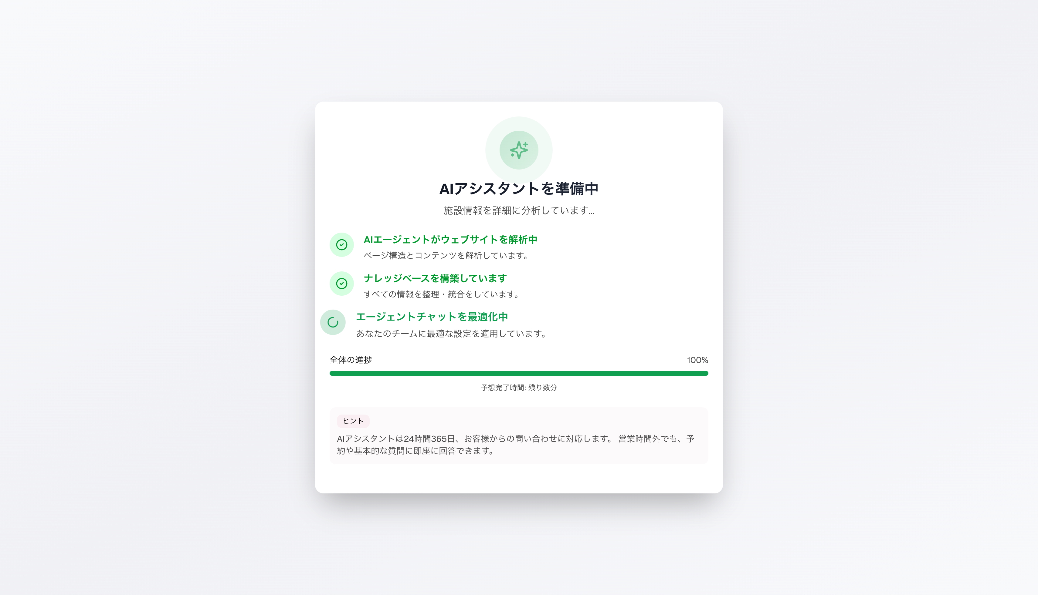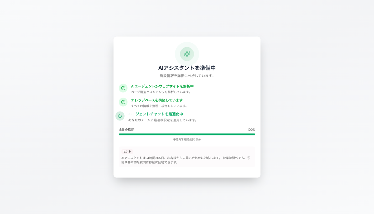 強み1:【5分で即導入】魔法のようなAIエージェントが、サービスを即開始
