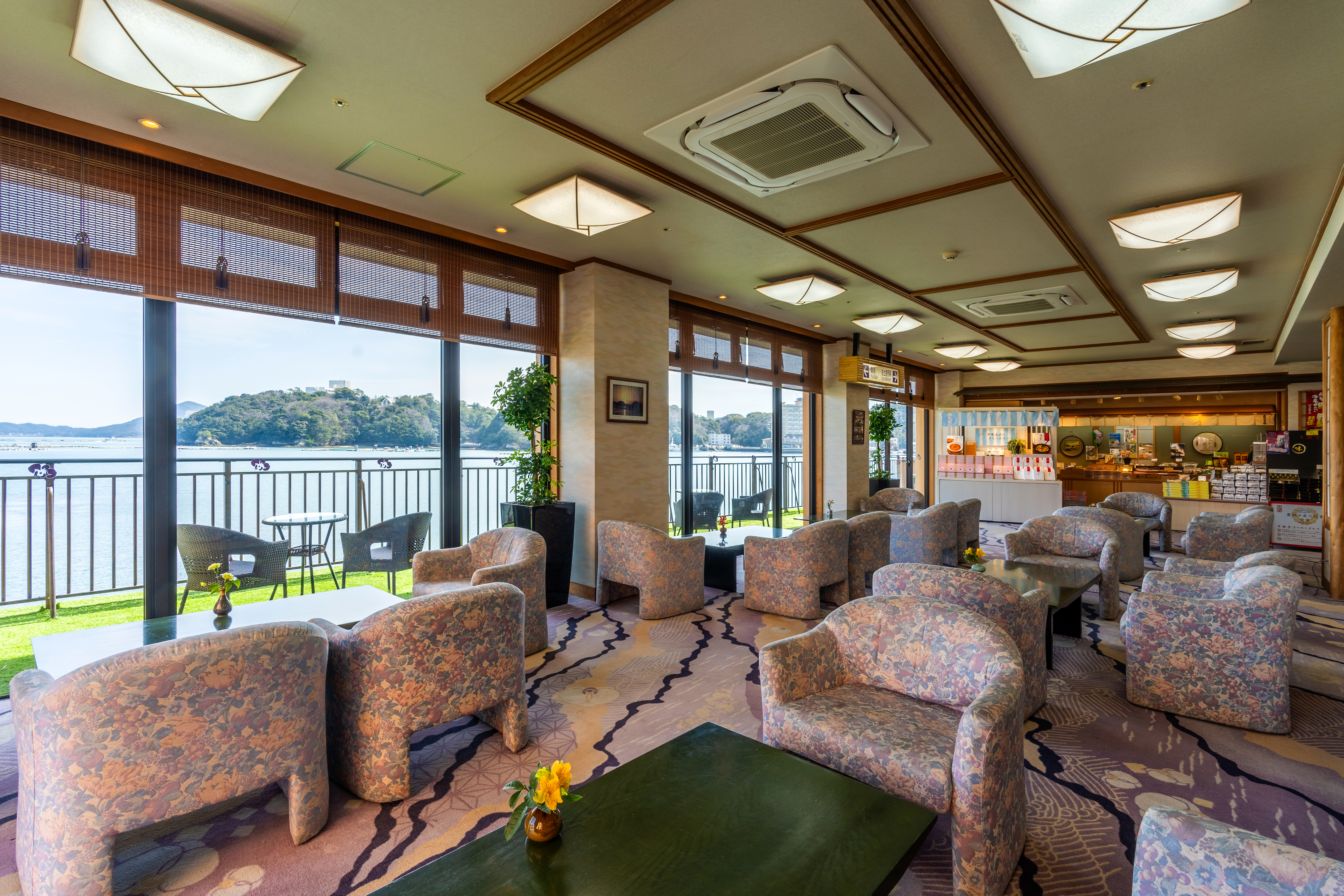 【館内施設】海を望むラウンジとお土産処で旅を彩る