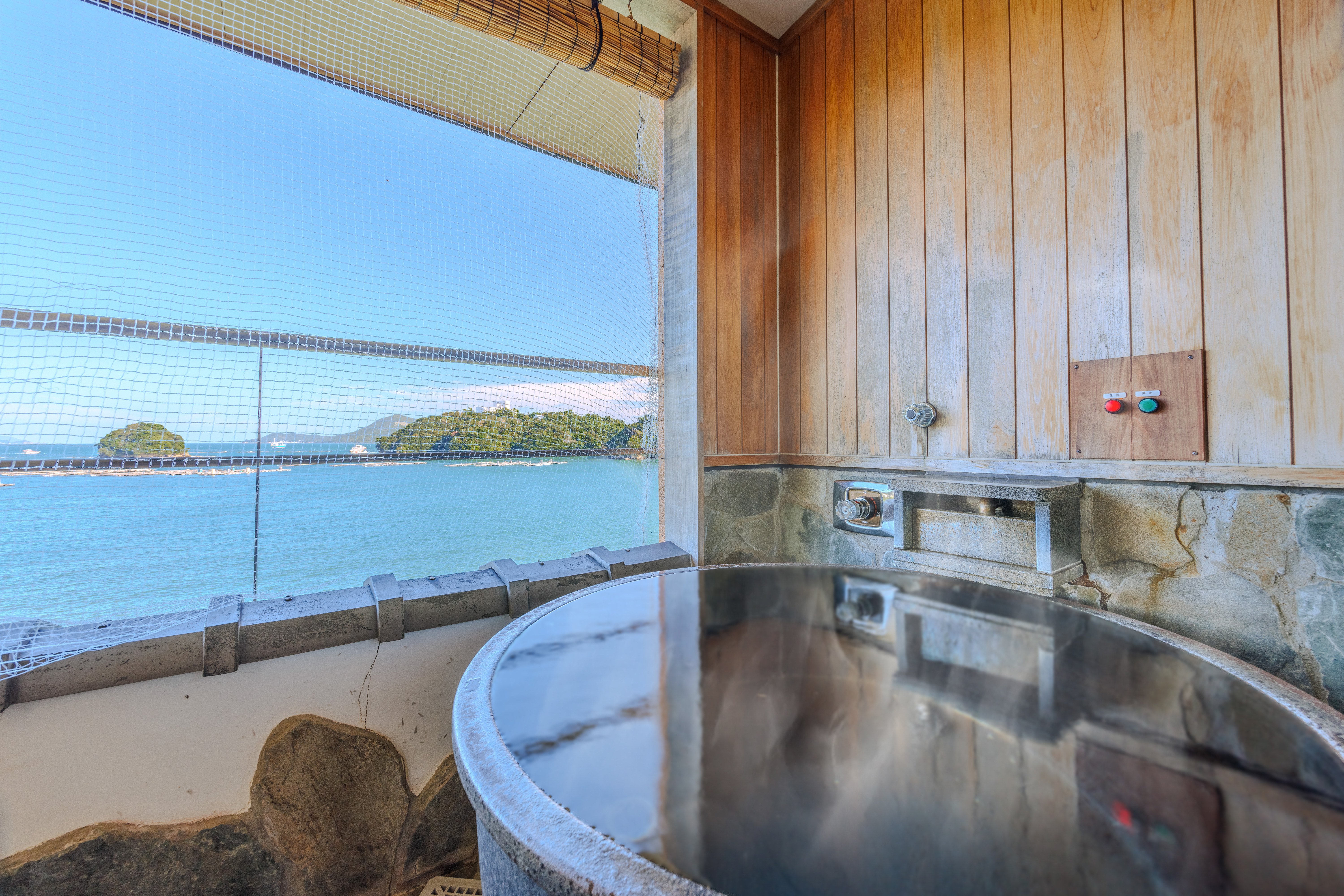 海を間近に感じる「渚の露天風呂」は、まさに絶景の特等席です。昼間は青く輝く海と空のコントラストを、夜は月明かりに照らされた幻想的な海面を眺めながらの入浴は格別。潮風が火照った頬を撫でる心地よさは、露天風呂ならではの見どころであり醍醐味です。また、屋内にある大浴場(殿方・姫方)も広々とした御影石造りで、大きな窓から海を一望できます。さらに、一部のシャワーヘッドには、微細な気泡で汚れを落とす最新技術「ミラブルZERO」を採用しており、美肌効果へのこだわりが随所に感じられます。