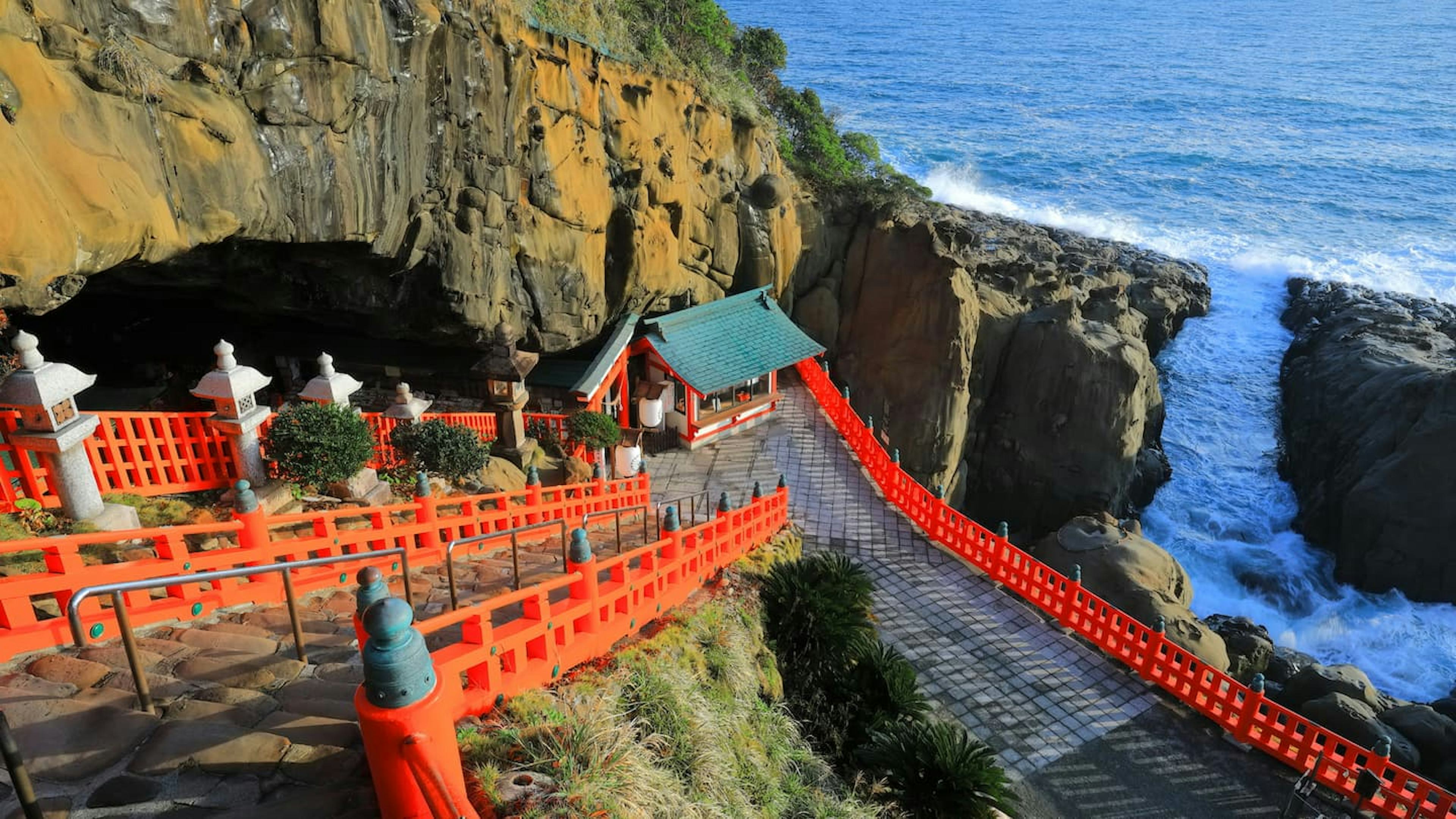 日南海岸ドライブコースには、歴史ある神社や独特な観光スポットが点在しています。青島神社は縁結びや安産のパワースポットとして知られ、鵜戸神宮は洞窟内にある珍しい神社です。