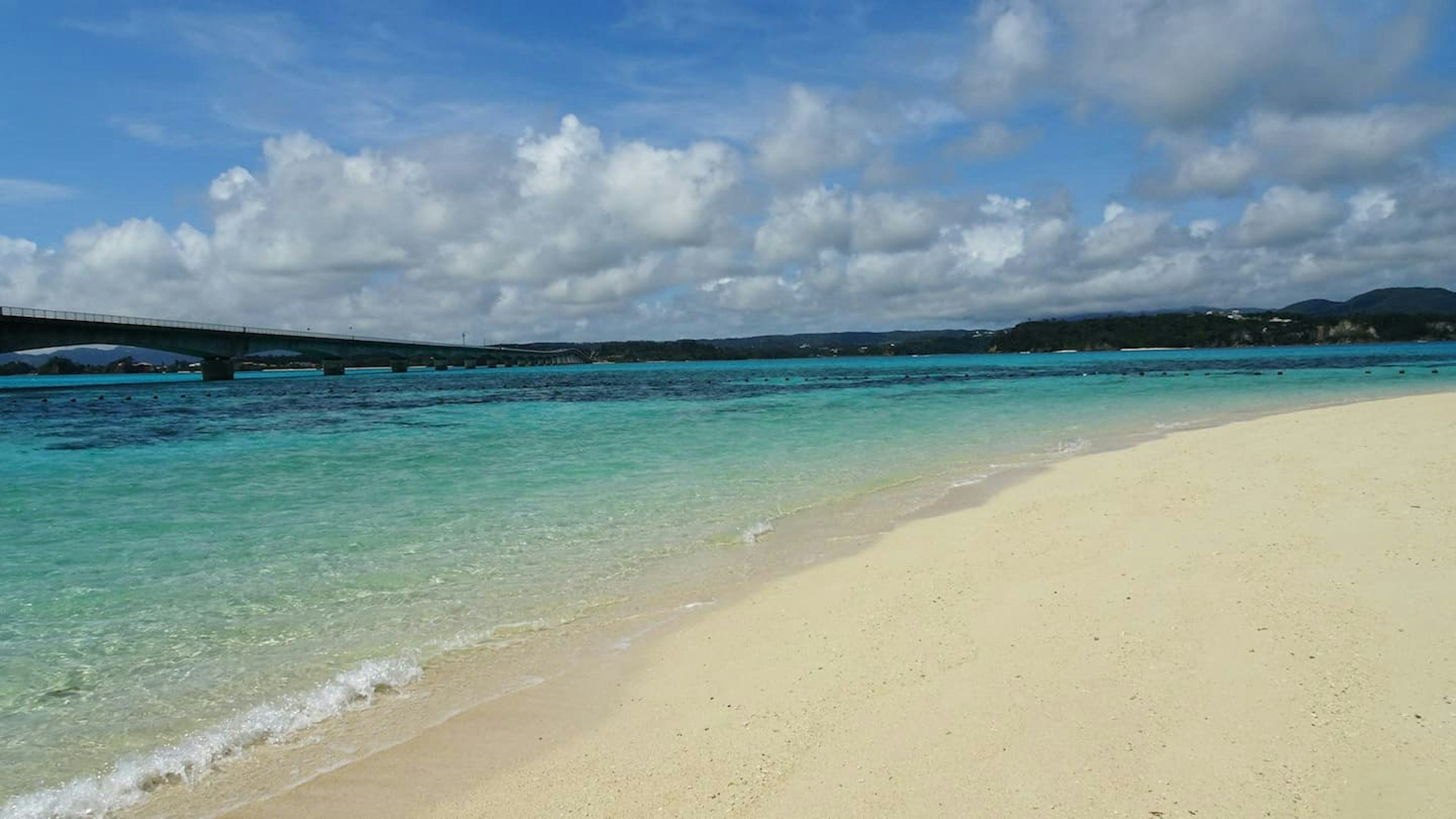 約1キロメートル続く白い砂浜と、それに沿うように並ぶモクマオウは、南国らしい雰囲気を作り上げています。人工物がなく、沖縄の自然の美しさを感じられるビーチなので、海水浴や昼寝などをしながら、ゆっくりと過ごす時間を楽しんでみてください。