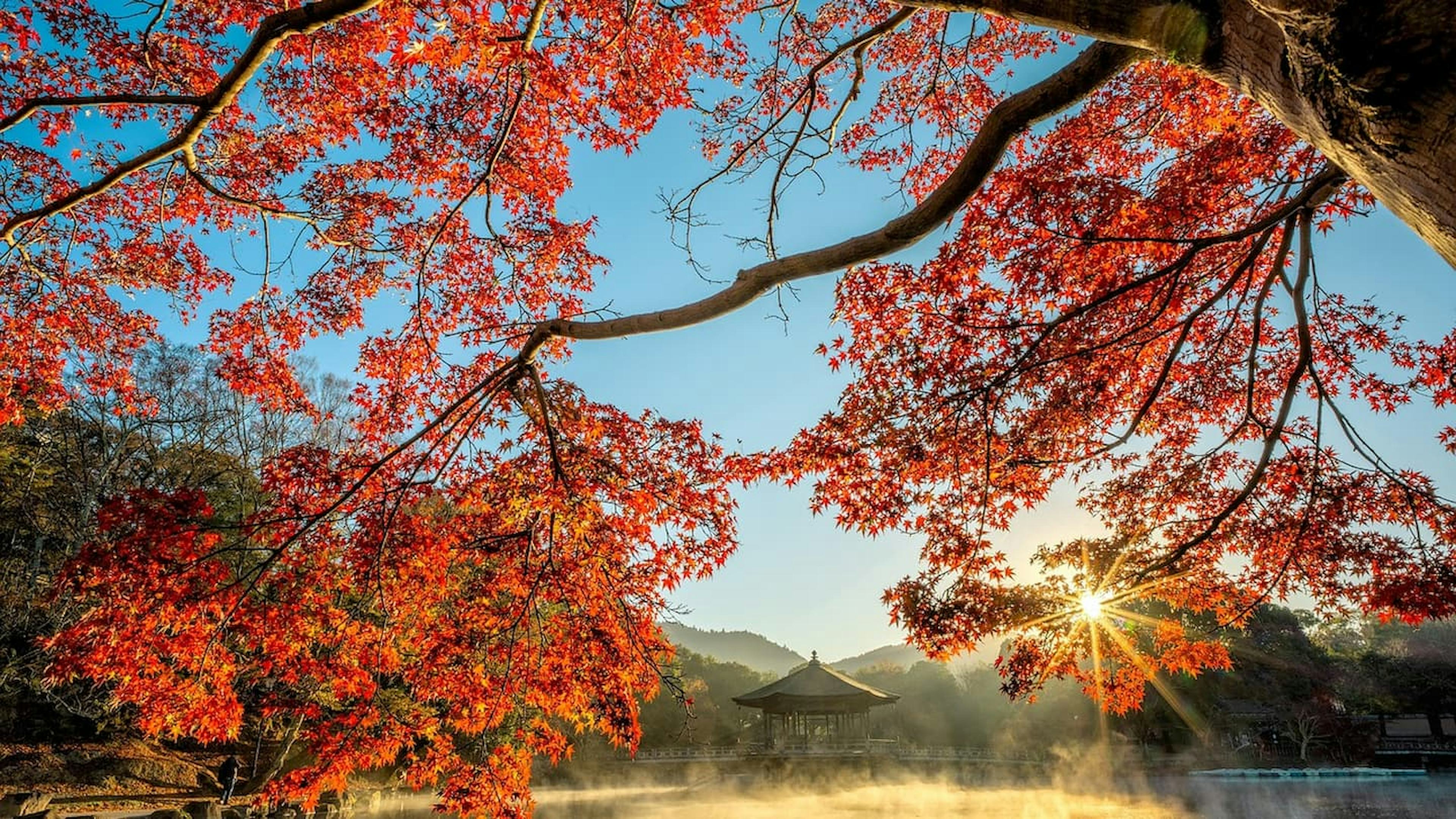 神秘的な雰囲気と鮮やかな紅葉の共演
