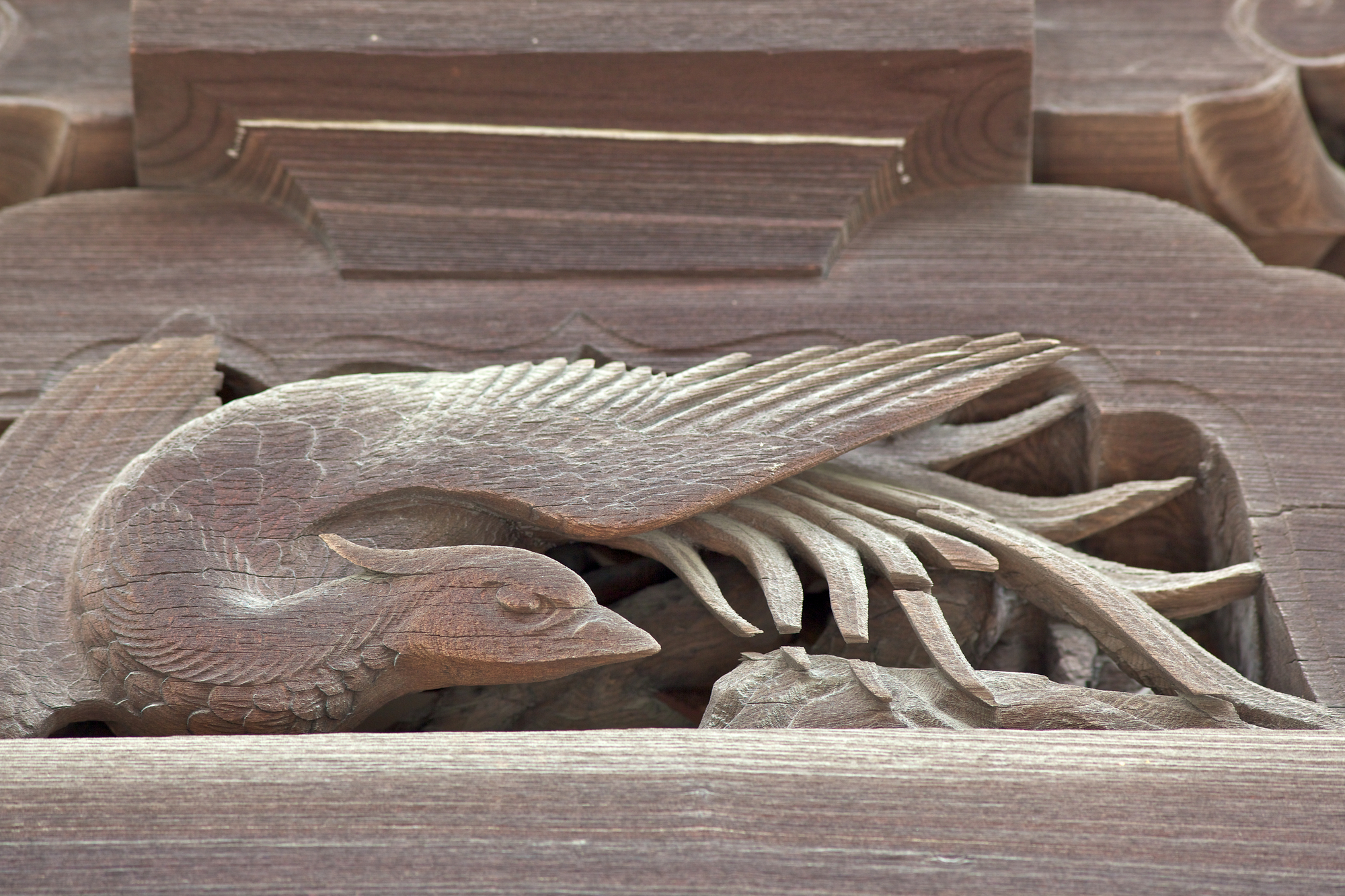 ここでの見どころは、本堂の廊下にある透かし彫りの欄間。雲蝶が得意とした牡丹と唐獅子のモチーフはもちろん、麒麟(きりん)や獏(ばく)といった想像上の動物たちが、生き生きと彫り出されています。その繊細で力強いノミさばきは、まさに神業!