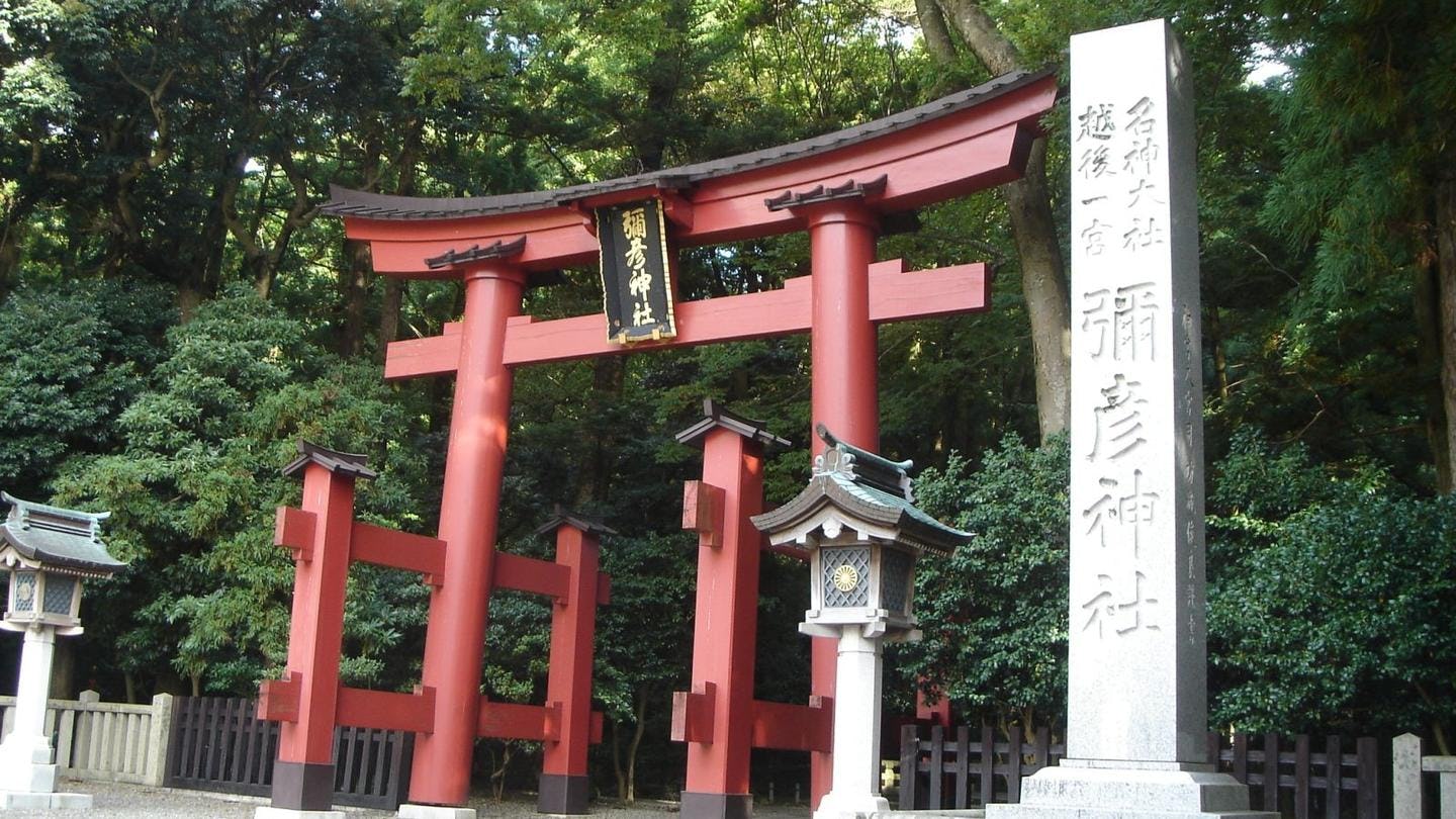 JR燕三条駅の2階、新幹線改札の目の前に突如として現れる朱色の鳥居は、訪れる人々を驚かせます。これは、弥彦神社の遥拝所として設置されたもので、越後一宮である弥彦神社への信仰の篤さを感じさせます。駅という現代的な空間に、伝統的な鳥居が鎮座する光景は、まさに燕三条地域が持つ「ものづくり」の先進性と「歴史・文化」の奥深さの融合を象徴しているかのようです。