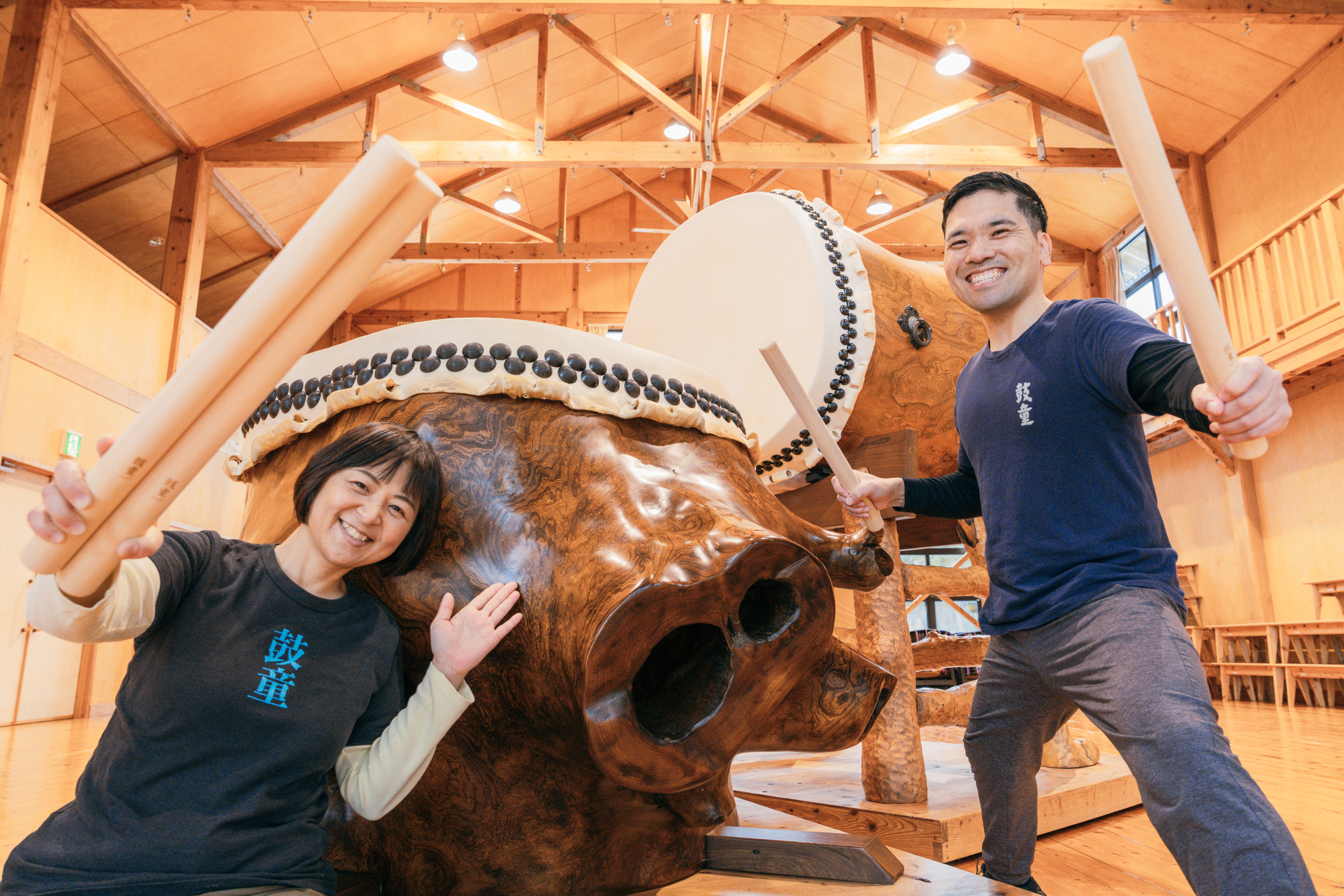 樹齢約600年のケヤキから作られた巨大な大太鼓をはじめ、大小さまざまな太鼓が並ぶ空間で、「一発ドン!」と叩くところから始まるプログラムは、大人も子どもも初心者も一緒になって楽しめる内容になっています。