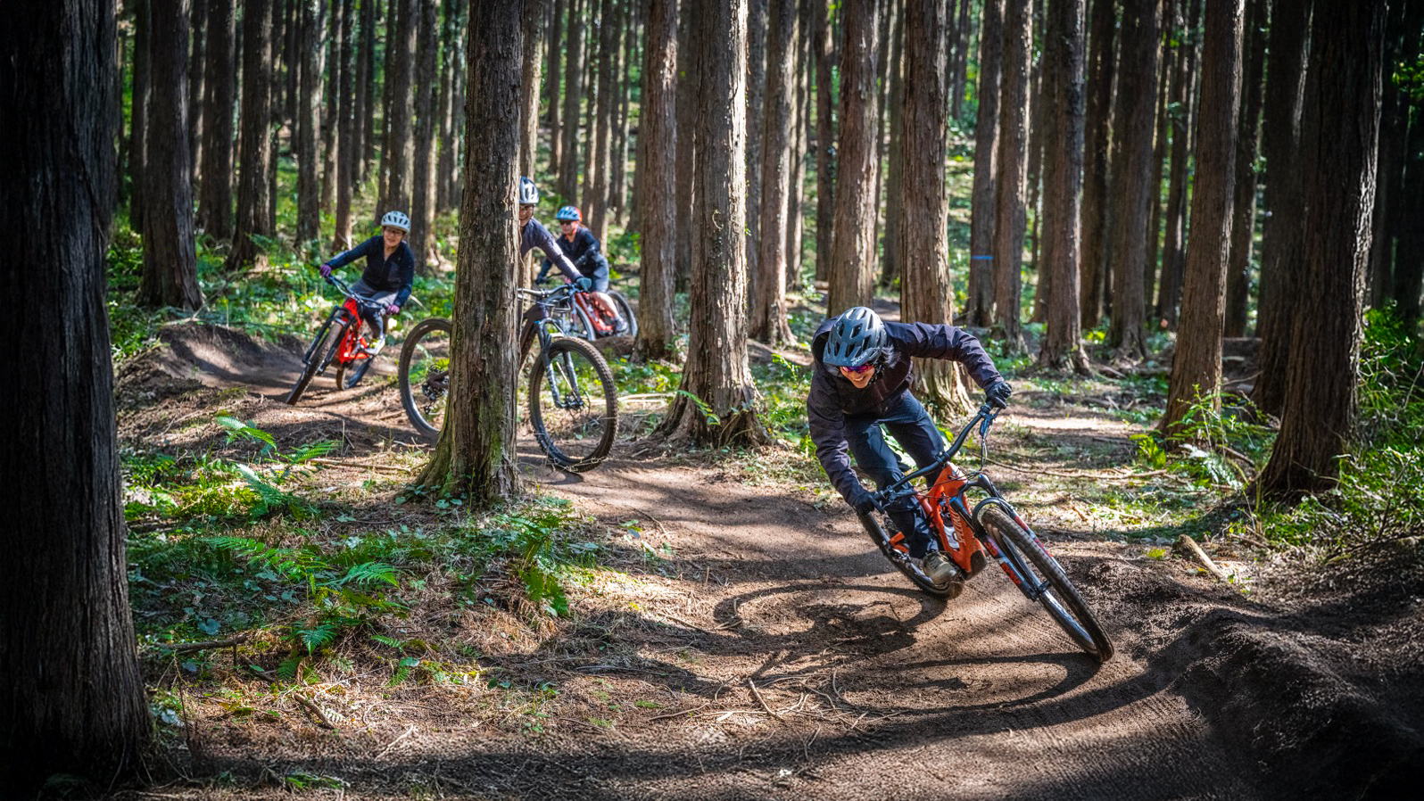 森の息吹を感じながら、初心者から上級者まで楽しめるマウンテンバイク体験!フォレストバイクは神奈川県小田原市の森林の中にある、初心者でも安心してトレイルライドが楽しめるマウンテンバイクパークです。