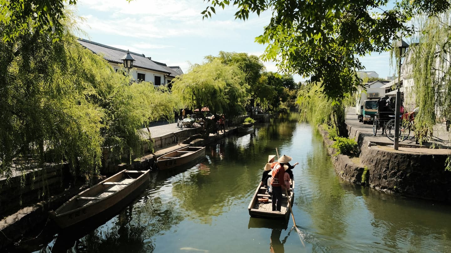 倉敷美観地区は、江戸時代の町並みが残る歴史的な街並みで有名です。11月は観光のベストシーズンで、心地よい気温の中、白壁の町家や柳並木を楽しめます。