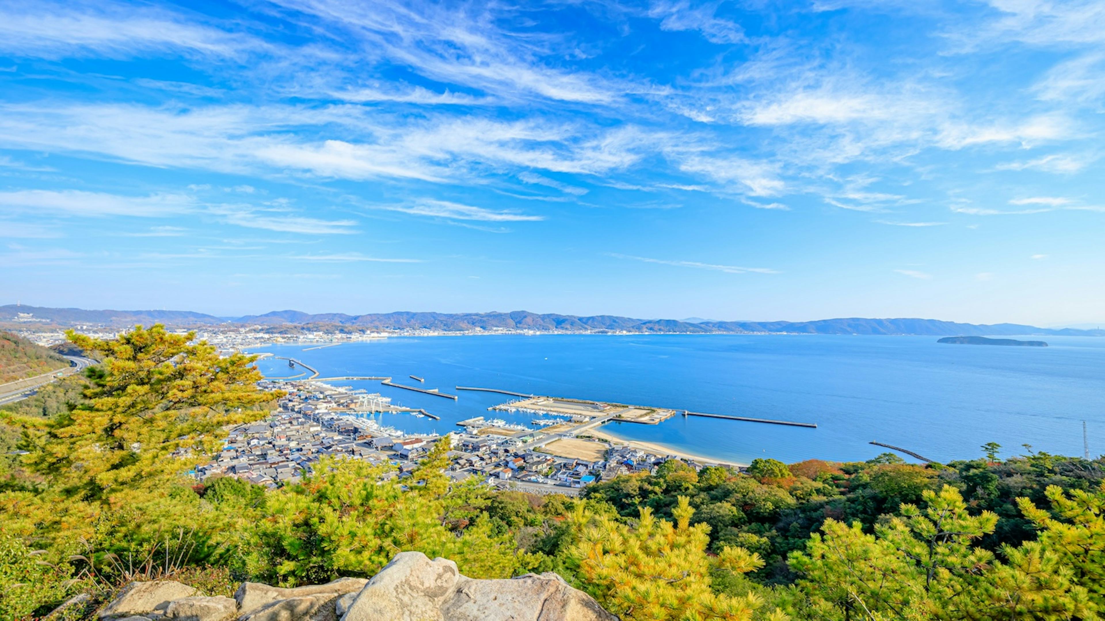 瀬戸内海に浮かぶ島々と、それらを結ぶ瀬戸大橋の壮大な景色は圧巻です。夕暮れ時には、橋のライトアップと夕日が織りなす美しい風景を楽しむこともできます。