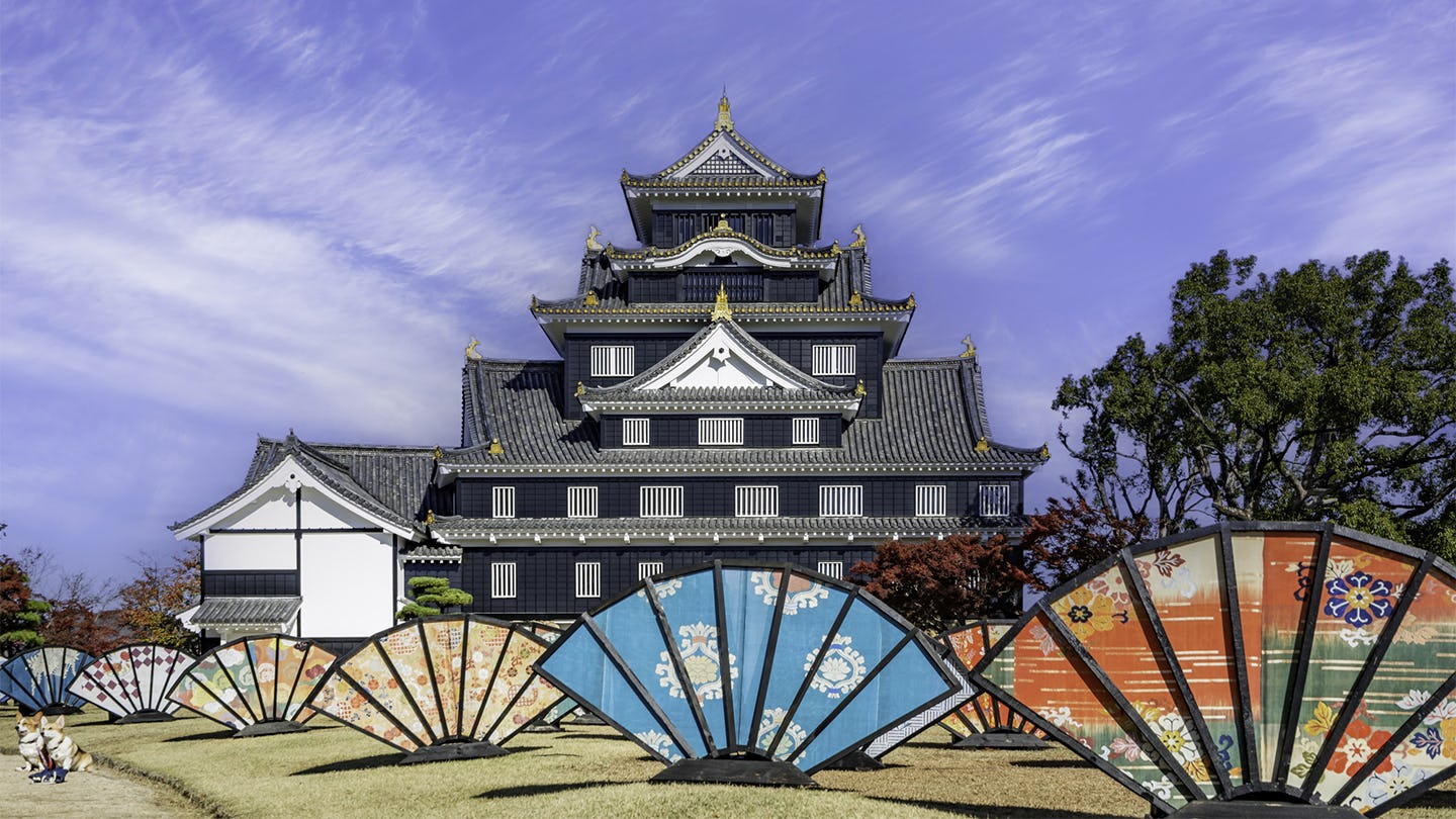 岡山駅から路面電車と徒歩で約20分の場所にある岡山城は、その黒い外観から「烏城(うじょう)」と呼ばれ、威厳ある姿が印象的な岡山を代表する観光スポット。