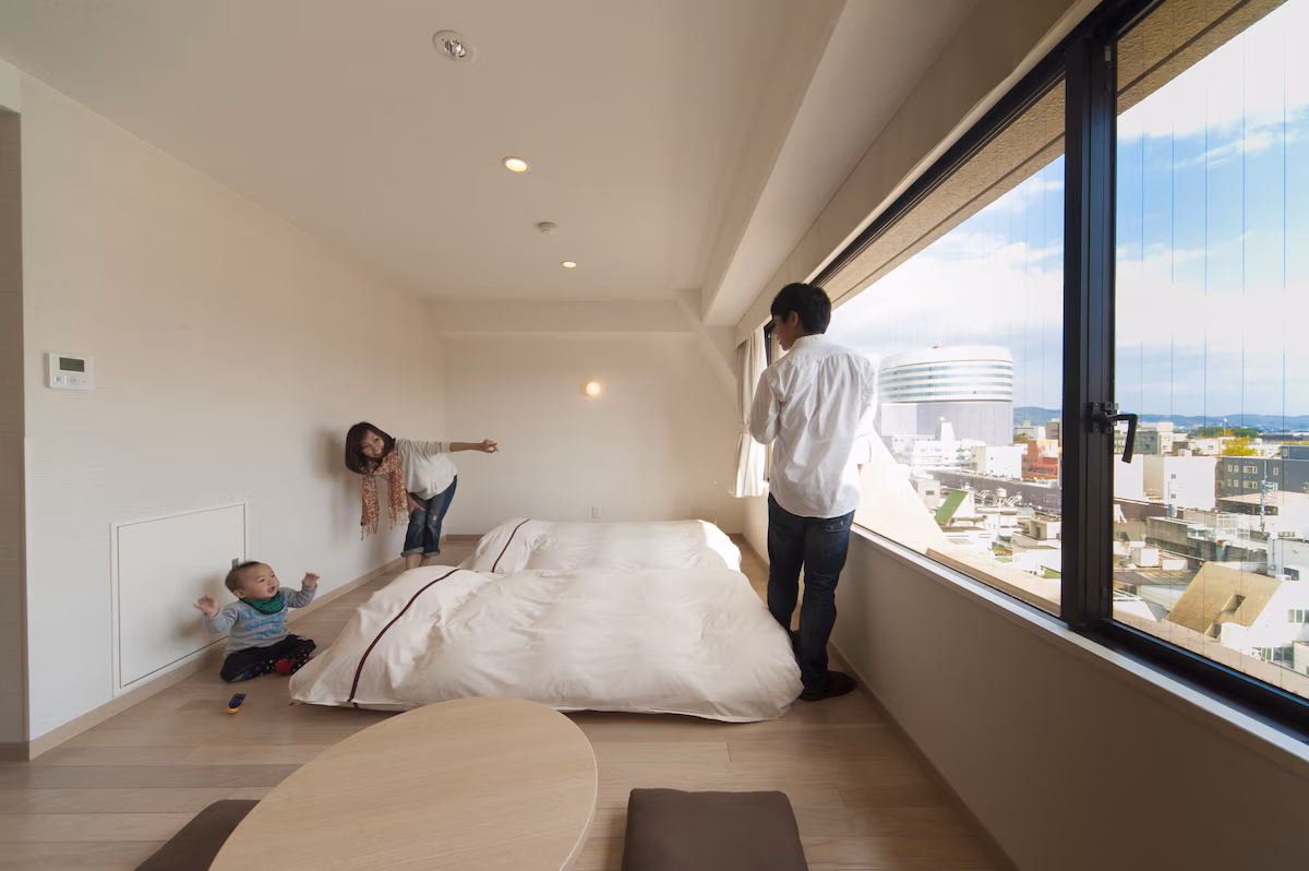 全室40平方メートル以上という広さなので、家族みんなでくつろげる空間が確保されています。おもちゃを広げて遊んだり、お昼寝したりと、自宅にいるような感覚で過ごせるのが和室の魅力ですね。