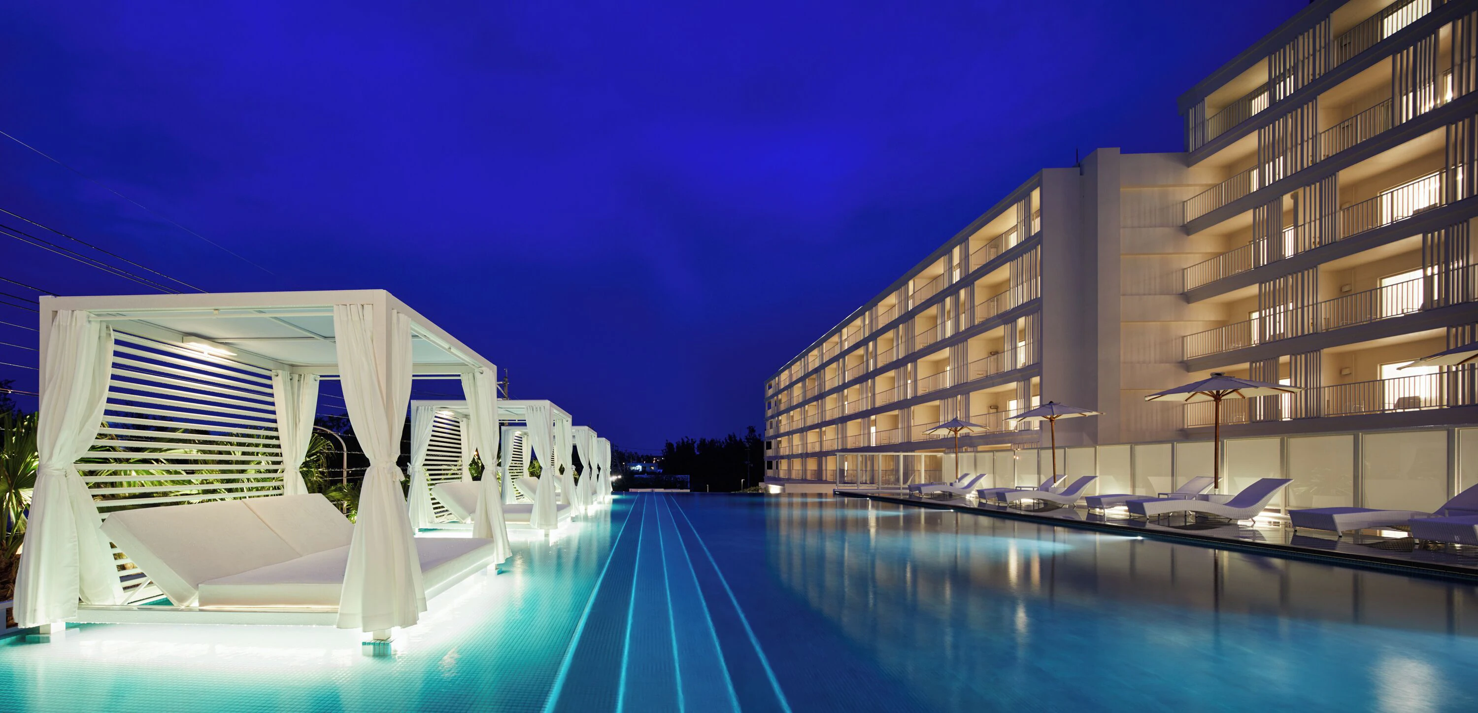 全部屋がスイートルームになっており、モダンでスタイリッシュなデザイン。リビングやテラス、ジェットバスやプライベートプール付きの部屋などもあり、ラグジュアリーな滞在が叶います。