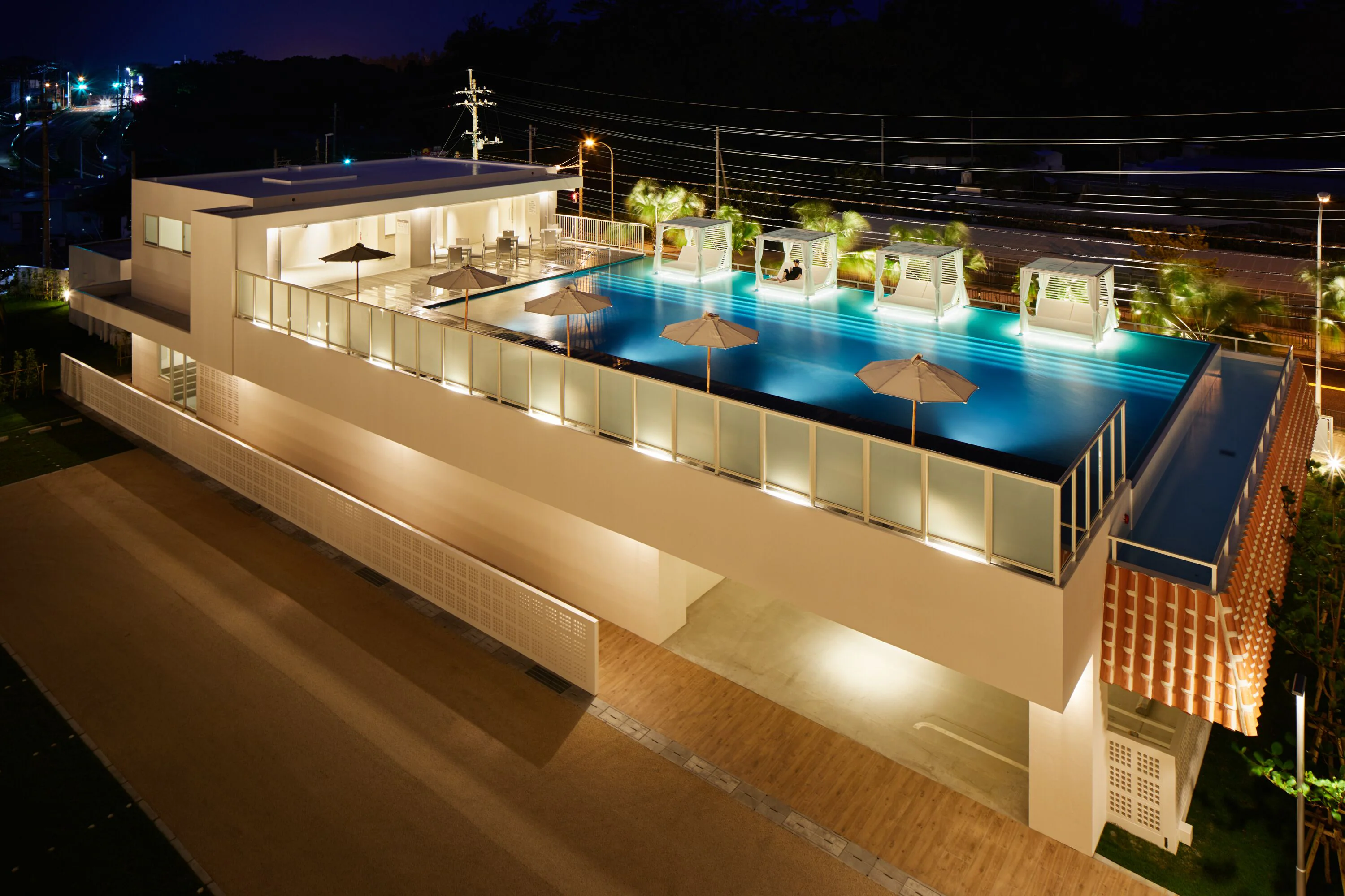 オープンエアのカフェラウンジは24時間利用でき、持ち込み自由なのもポイント。プールやサウナも備わっており、恩納村の自然に囲まれながら思い思いの時間を過ごせます。美ら海水族館ややんばるエリアにもアクセスしやすく、沖縄観光の拠点としても便利なホテルです。