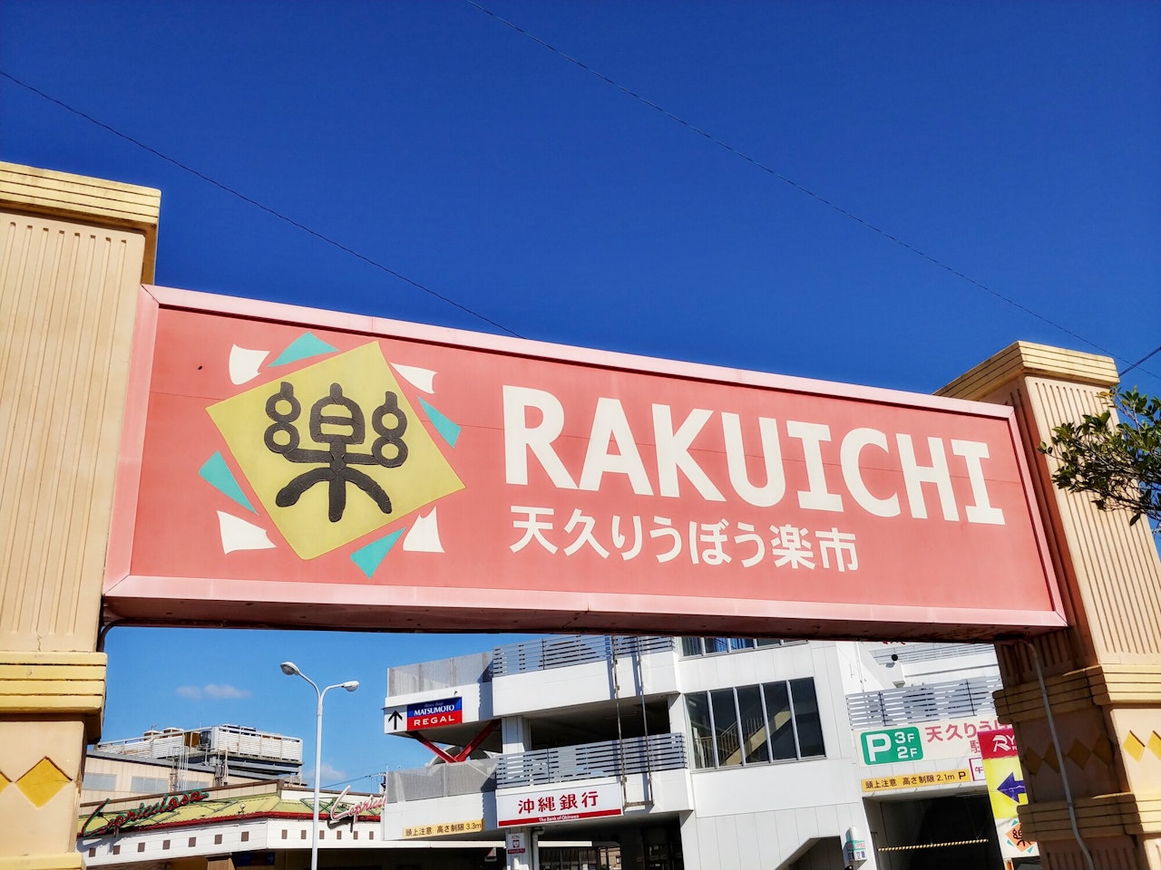 「天久りうぼう楽市」は、広大な敷地にスーパーマーケットやユニクロ、無印良品、家電量販店、飲食店などが集まるオープンエア型のショッピングモールです。特に注目なのが、24時間営業のスーパーマーケット「天久りうぼう」。