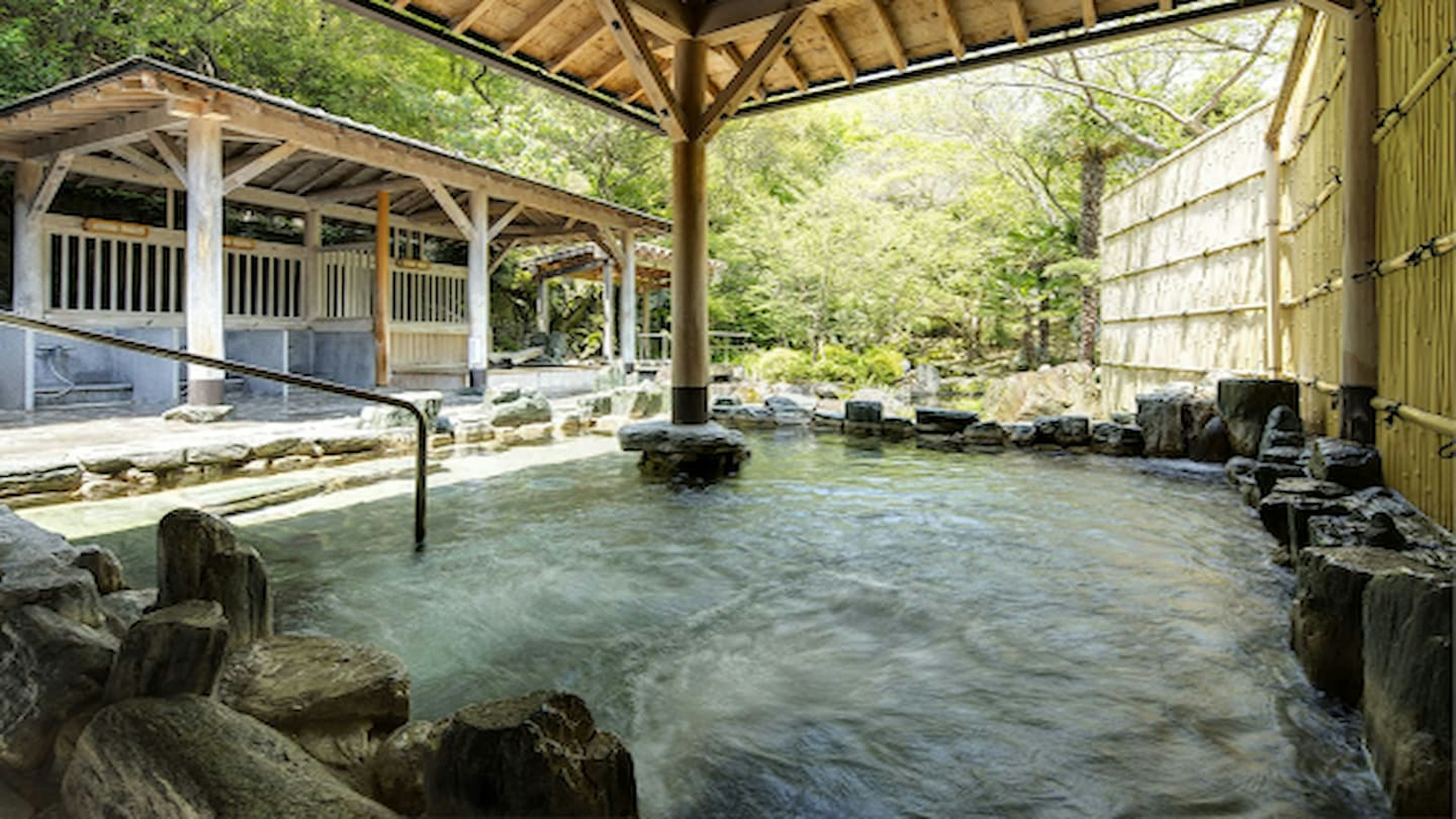 大阪随一の天然ナトリウム泉として名高い奥水間温泉。大阪市内から車で約50分の場所にある隠れ宿で、渓流を見下ろす露天風呂をそなえています。