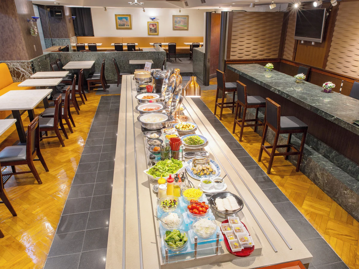 朝ごはんは、2階にあるカジュアル中華ダイニングのアダスタムでの和洋中バイキングがおすすめ。朝6時30分から9時50分(ラストオーダー9時30分)まで営業しており、出発が早い朝でも安心です。料金は1,500円(税込)で、和食、洋食、そして本格的な中華料理が並びます。バイキング形式なので、子どもが好きなものえらんで食べられるのがうれしいですね。