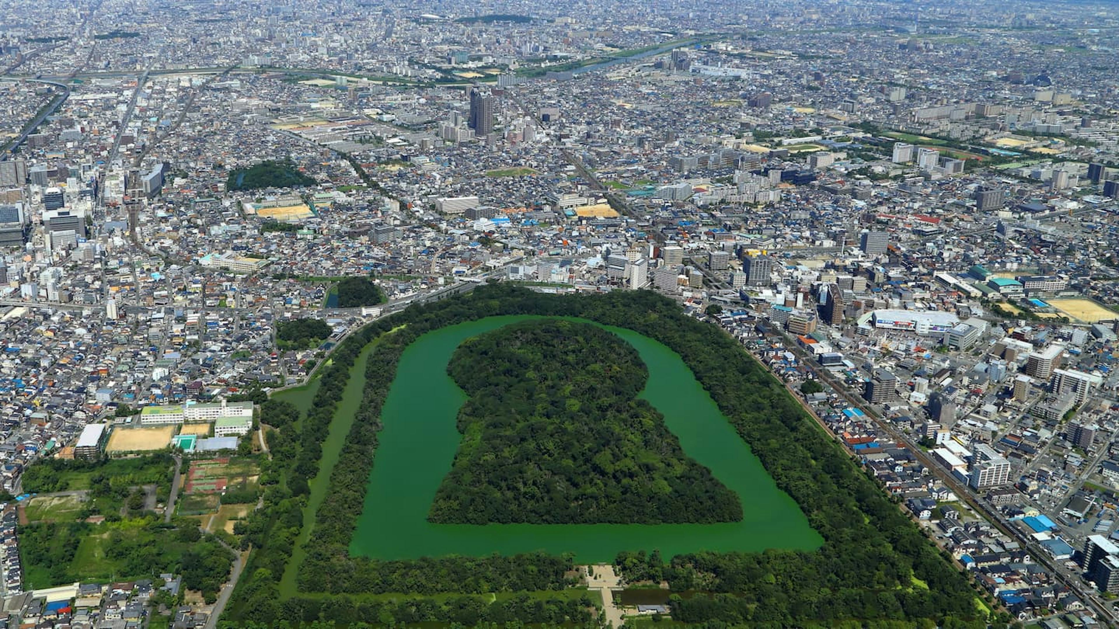 仁徳天皇陵古墳を囲む広大な緑地公園