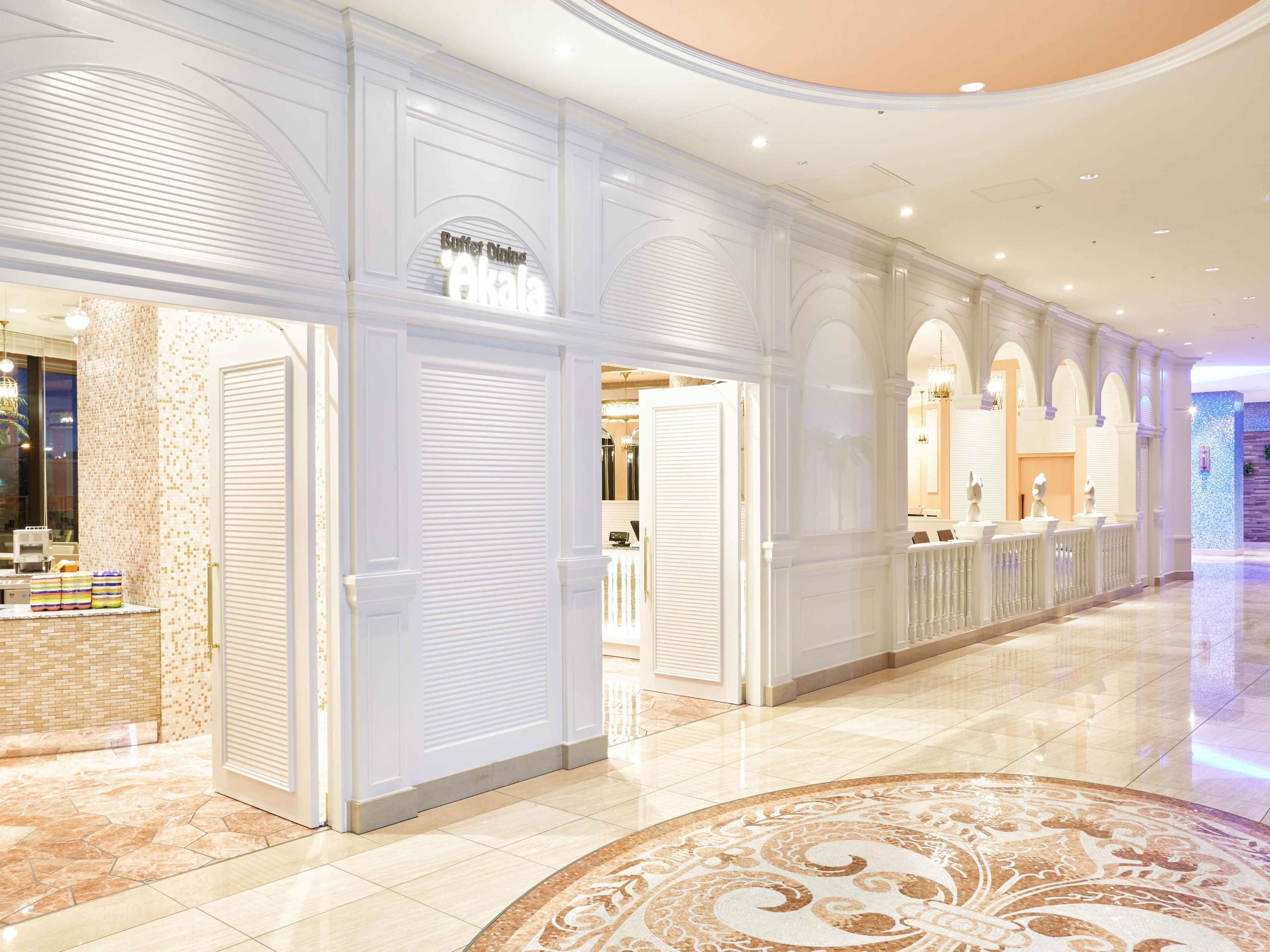 ホテル内のレストラン「アーカラ」は、ピンクとホワイトでまとめられた明るい雰囲気がすてきなオールデイダイニングです。