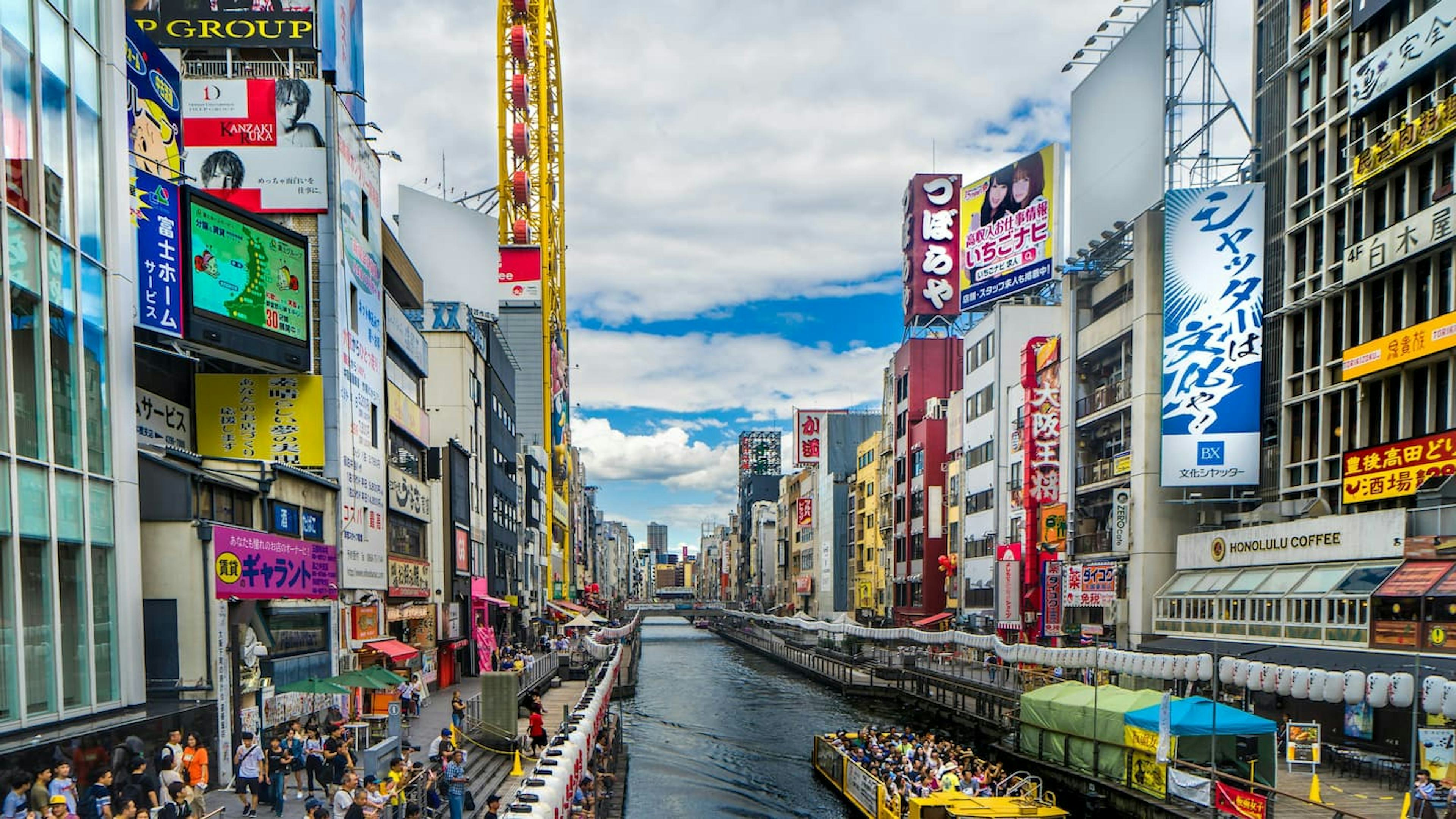 大阪ミナミの繁華街・難波。各線のなんば駅から北へ5~10分ほど歩いたところにある、巨大な看板やきらびやかなネオンで有名なエリアが道頓堀です。道頓堀へのアクセスは、OsakaMetroなんば駅の14番出口から向かうのがおすすめ。