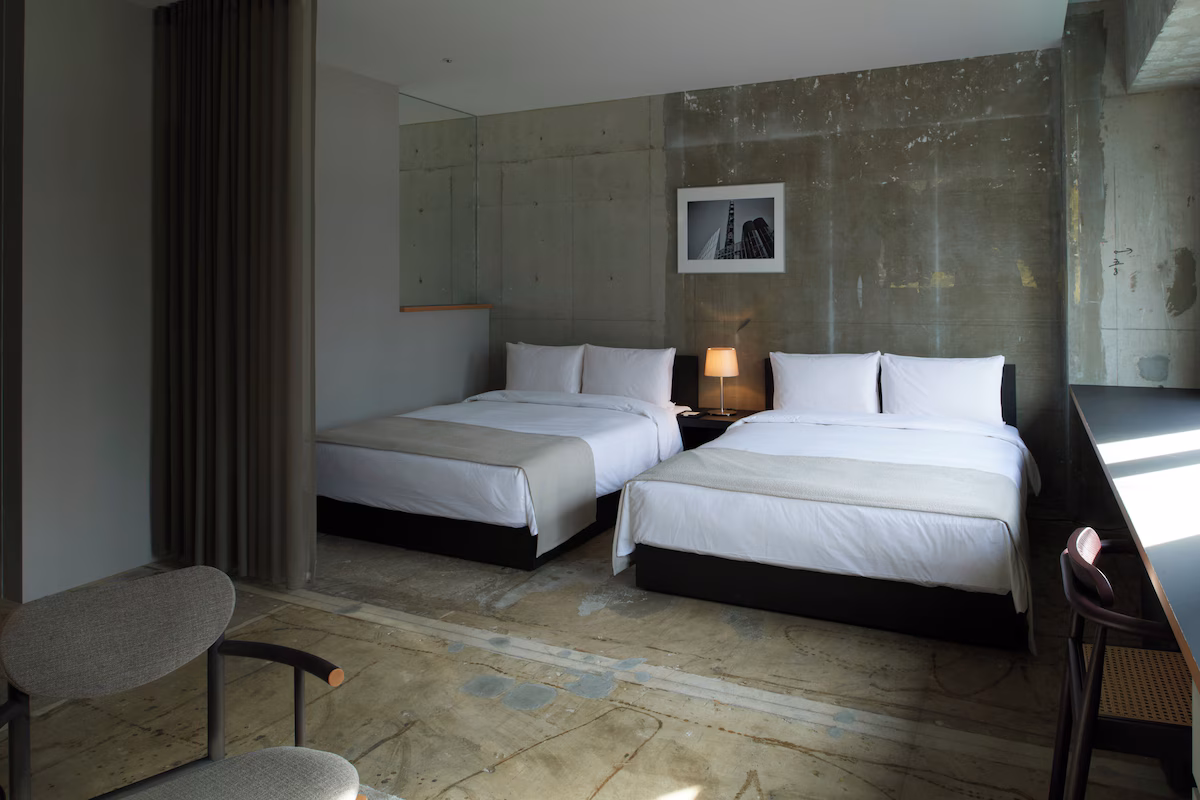 世界的デザイナーが手がけた「インダストリアル×自然美」が調和する空間は、一歩足を踏み入れるとまるで海外の高級邸宅のよう。各線大阪駅から徒歩圏内という好立地でありながら、上質なおもてなしと洗練されたデザインに包まれる、非日常で特別なステイが叶えられます。