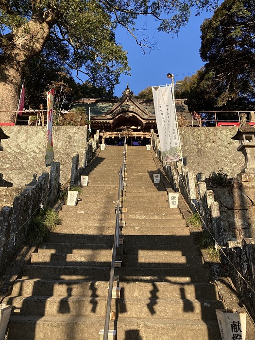 境内には、吉祥(善きこと)を呼び込むと言われる珍しい「逆さ狛犬」の燈篭や、葉を財布に入れると裏表のない正直な人間に育つ、または夫婦円満・縁結びのお守りとされる「凪の木」など、見どころが豊富。程よい急斜面の「健脚階段」(43段)も有名で、健康祈願に訪れる参拝者も多くいます。静かな杜の中で、心穏やかなひとときを過ごせる穴場スポットです。