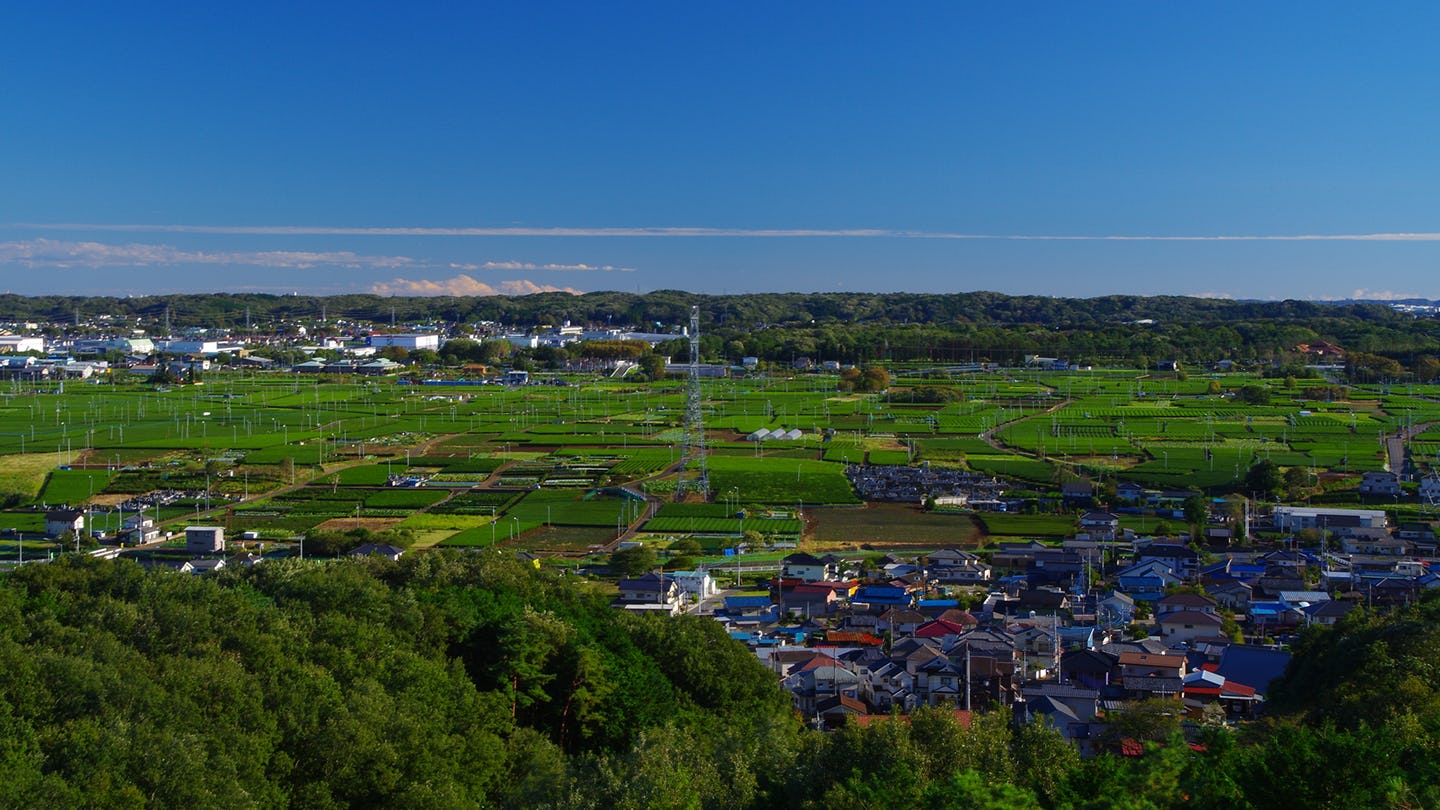桜山展望台は入間市の加治丘陵の一角、標高189mに立ち、360度のパノラマが楽しめる絶好の眺望スポットです。展望台からは入間市の街並みはもちろん、晴れた日には富士山、丹沢、奥多摩、秩父連山、筑波山、都心の高層ビル群まで一望できます。