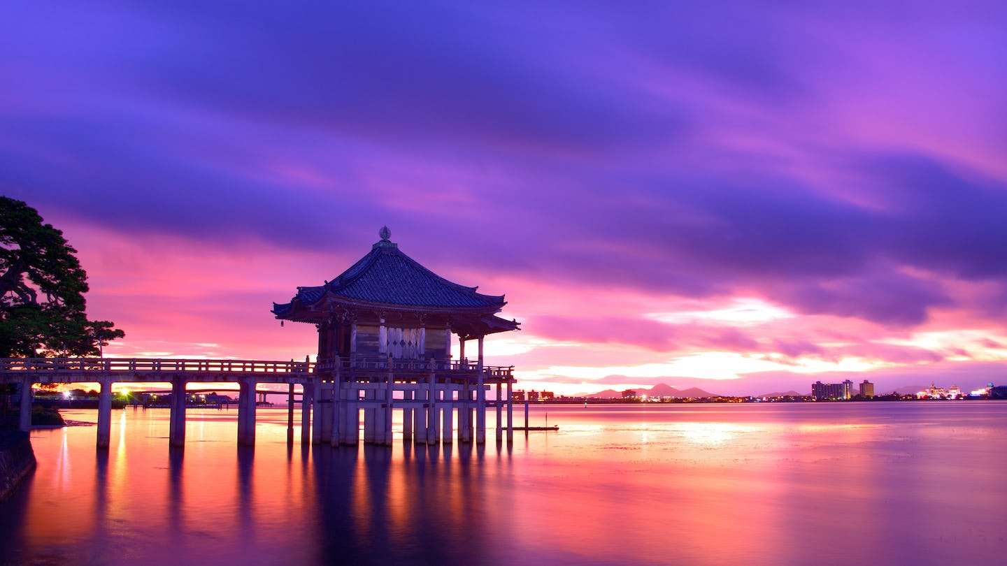 湖の中に突き出している浮御堂は琵琶湖はもちろん、伊吹山や近江富士、沖の島、比良連峰、比叡山などを一望できる名所。松尾芭蕉、小林一茶、歌川広重、葛飾北斎などが訪れて多くの歌や絵画を残しています。日の出前後と夕方にはとくに美しい写真が撮れるので、タイミングを合わせて行ってみるのもおすすめですよ。