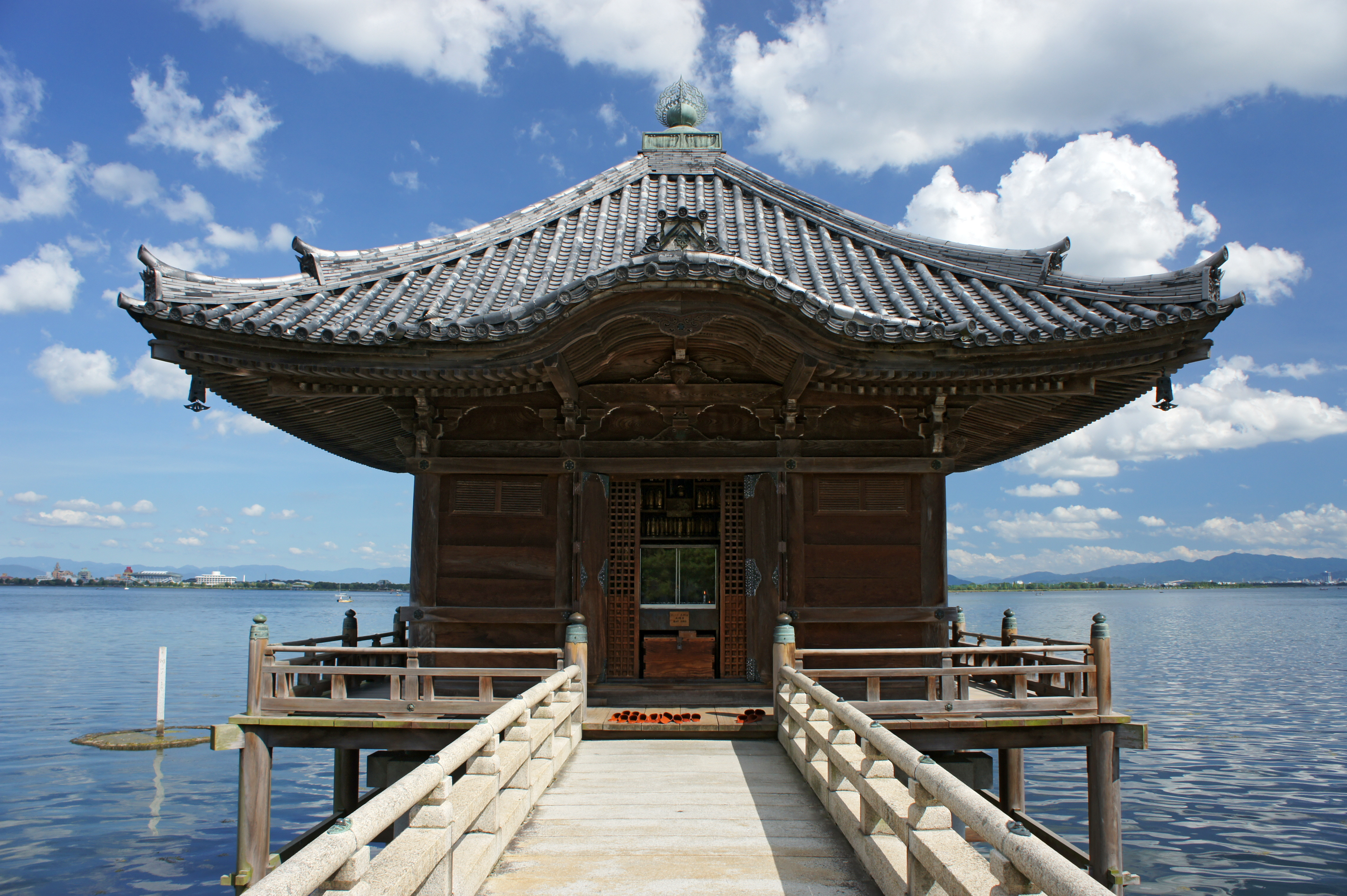 湖面に浮かぶ詩的なお堂。近江八景「堅田の落雁」