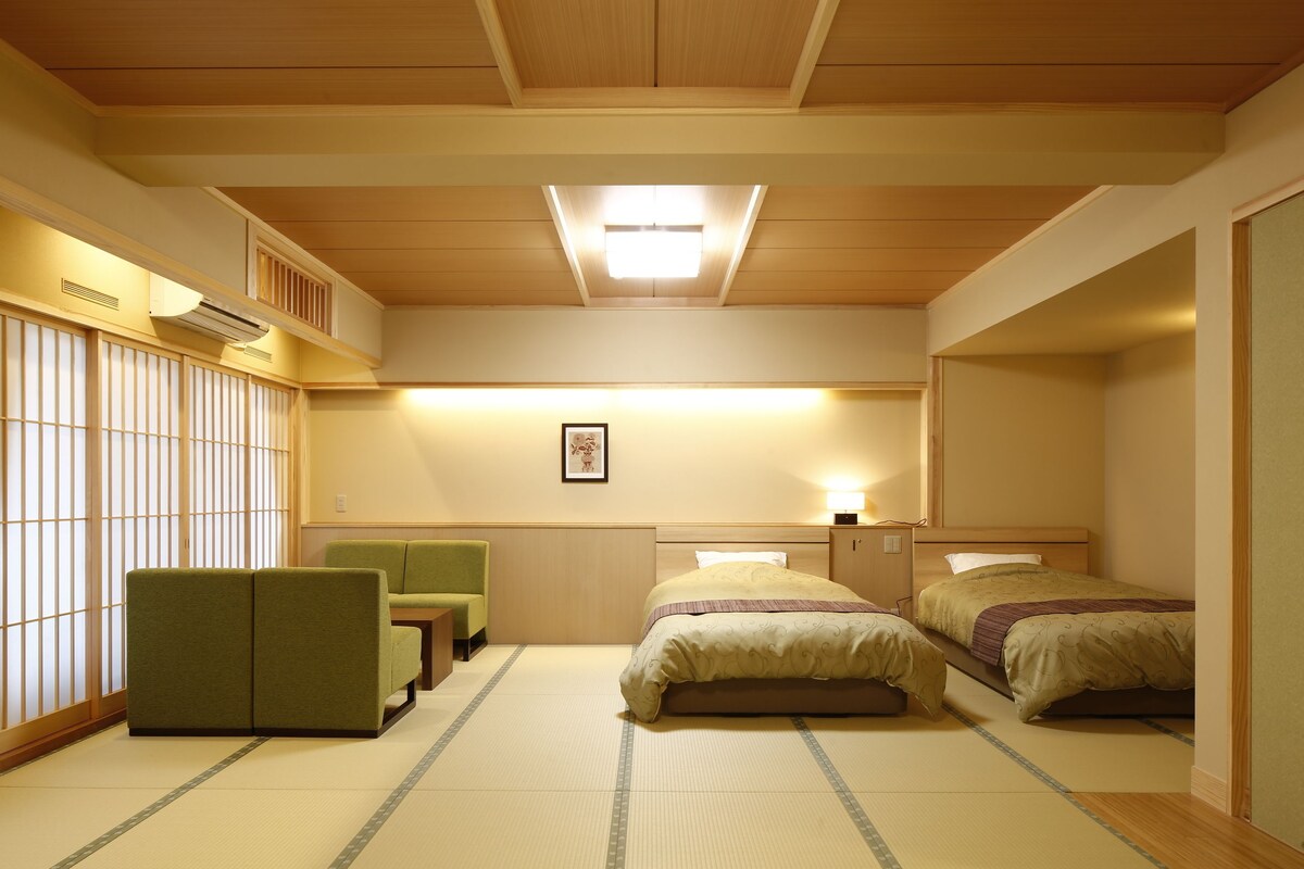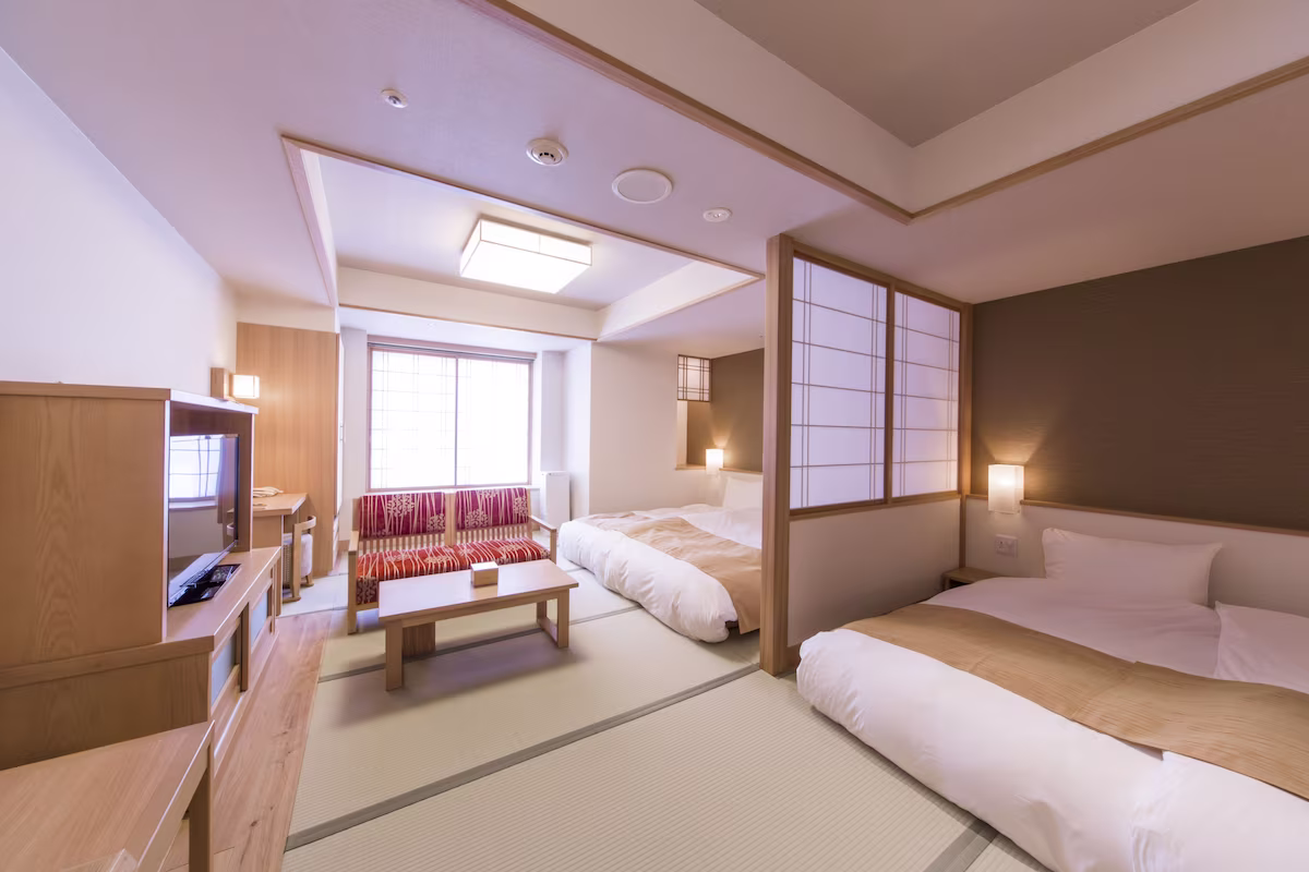 空間を広く見せるロータイプの和ベッドを採用したフラットな造りで、ハイハイ期の赤ちゃんや、足元が心配なシニア世代と一緒の旅行でも安心して過ごせます。世代を問わず誰もがほっとくつろげるプライベート空間で、ゆったりとお茶を飲みながら家族だんらんを満喫してみてはいかがでしょうか。