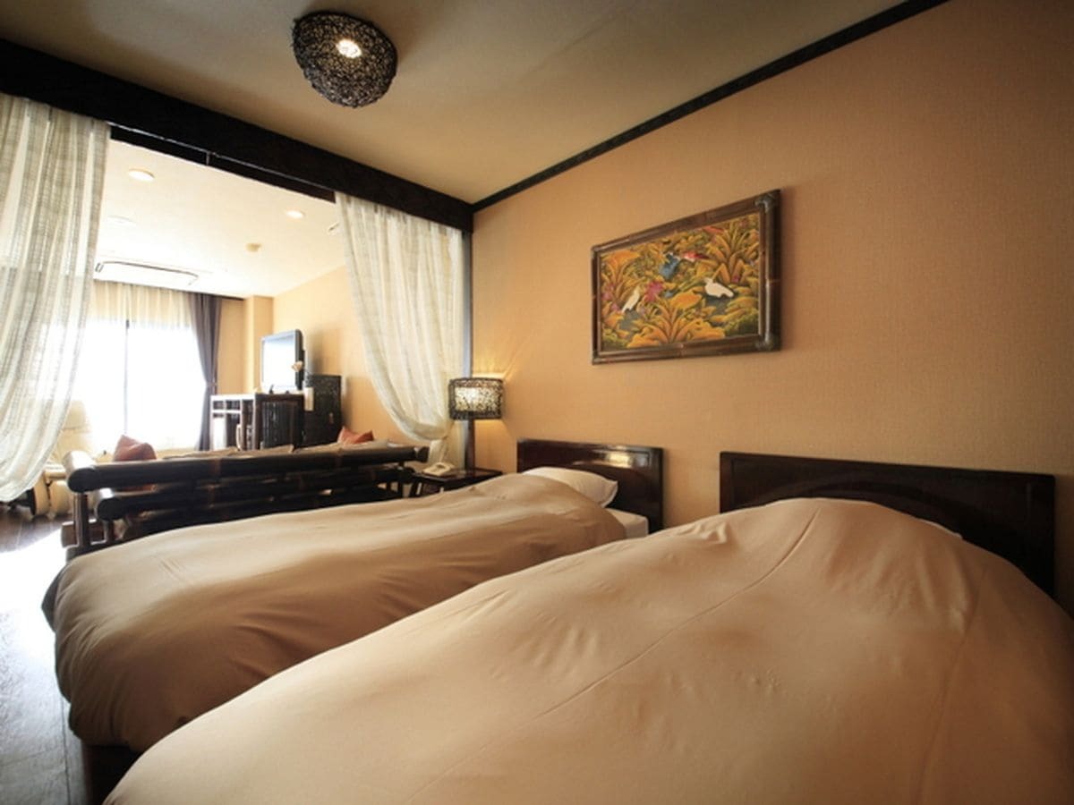 バリ島のリゾートをイメージした室内は、落ち着いた雰囲気でリラックスするのに最適。全室に加湿空気清浄機が完備されているのも、子ども連れ旅行には安心できるポイントです。