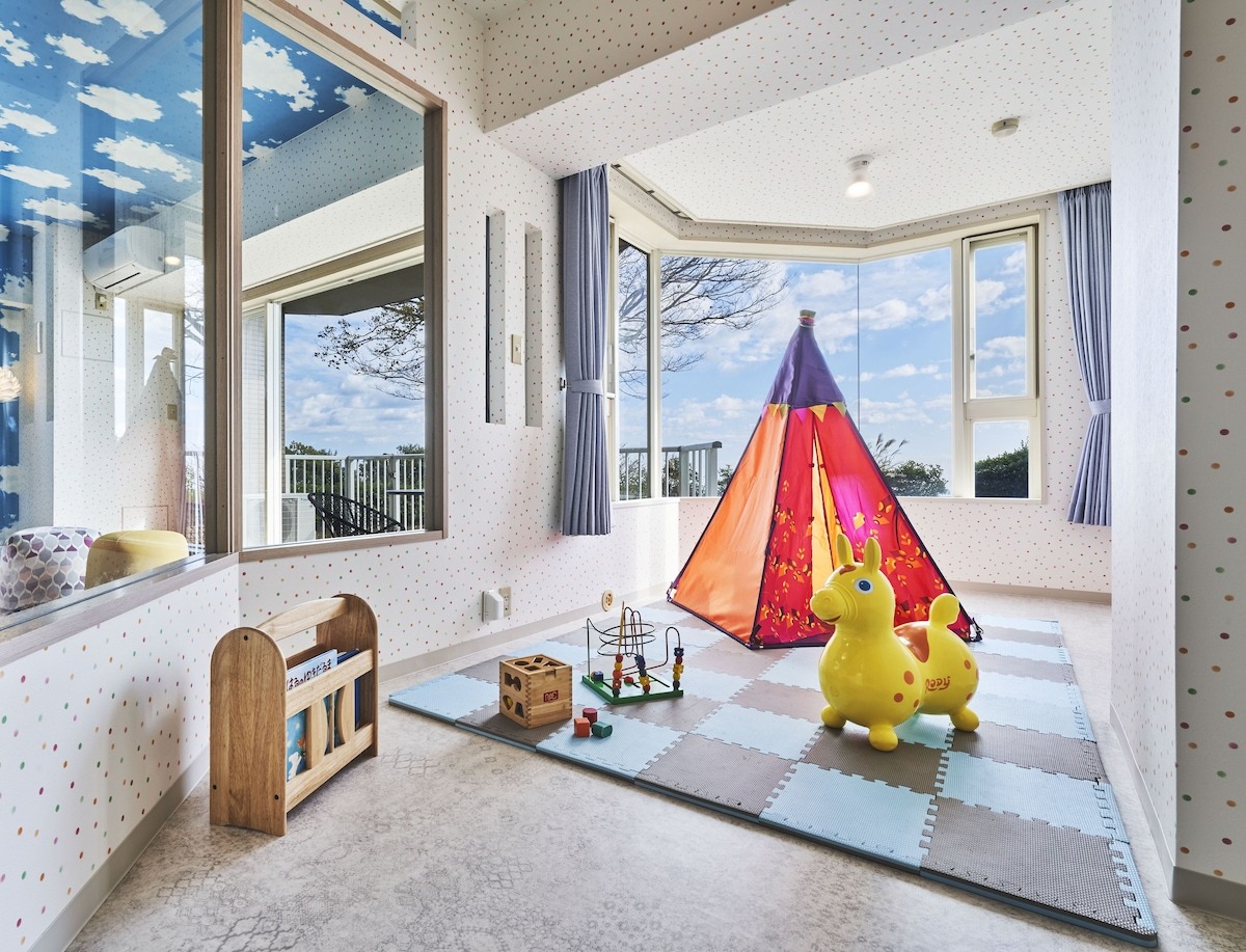 ホテルには、子どもたちが夢中になれる遊び場が満載です。屋上にある「おそらテラス」では、アスレチックやすべり台、のりもの広場など、伊豆の絶景を眺めながら思いっきり体を動かせます。