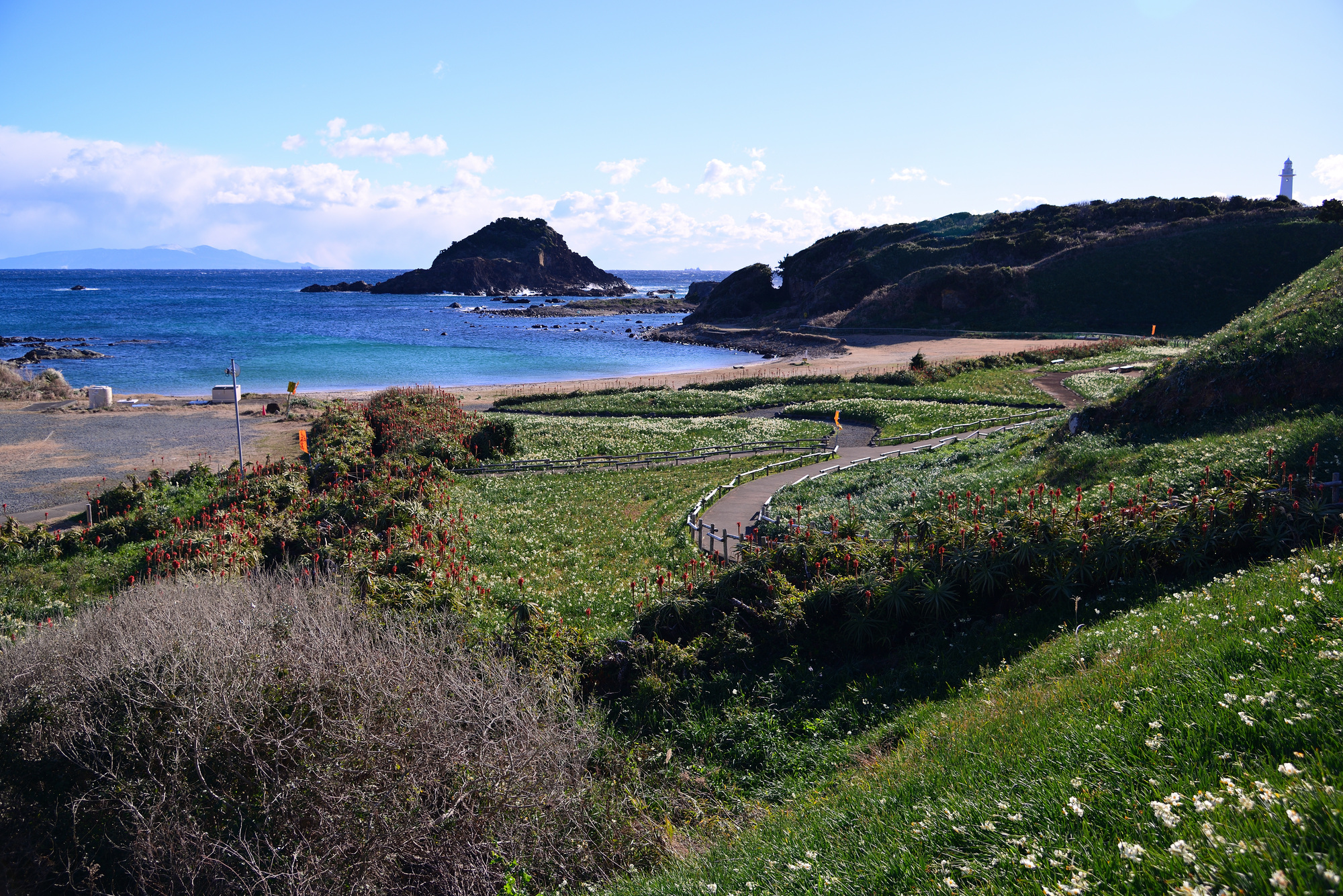 爪木崎公園は、下田市の東海岸に位置し、海に面したうつくしい公園です。公園内には桜や椿、季節ごとの花々が咲き誇り、訪れる人々を楽しませてくれます。特に春には、桜が満開になり、海と花のコントラストが見事です。また、海の景色はどこから見ても素晴らしく、晴れた日には遠くの島々も見渡せます。公園内には散歩道やベンチがあり、ゆっくりと自然を楽しむことができます。のんびりとした時間を過ごすのにぴったりの場所です。