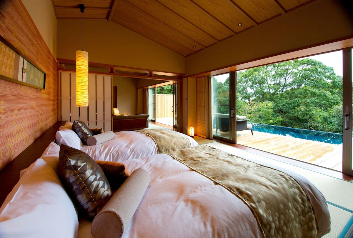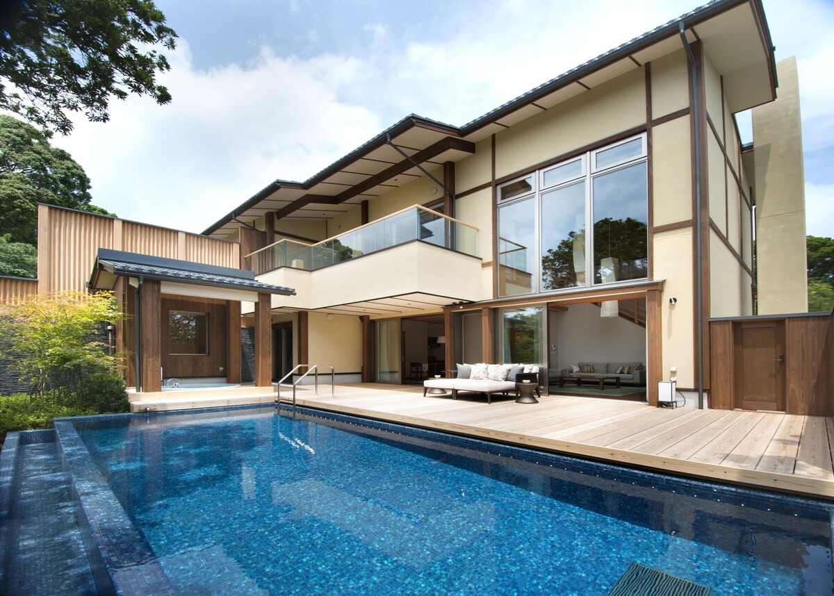 相模湾を見下ろす高台にたたずむ客室は、全13室すべてがオーシャンビューというぜいたくな造り。旅行好きなら一度は泊まりたいとあこがれる最高級リゾートです。