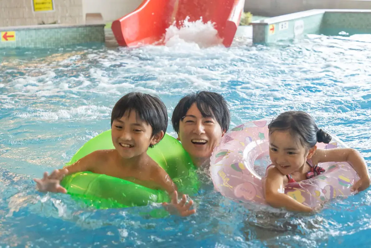 ウォータースライダーは子どもたちに大人気。何度も滑りに行きたくなること間違いなしです。水流浴プールでは、流れに身を任せてプカプカ浮かぶのも気持ちいい。雨の日でも天候を気にせず水遊びを楽しめるので、子連れ旅行には心強いですね。