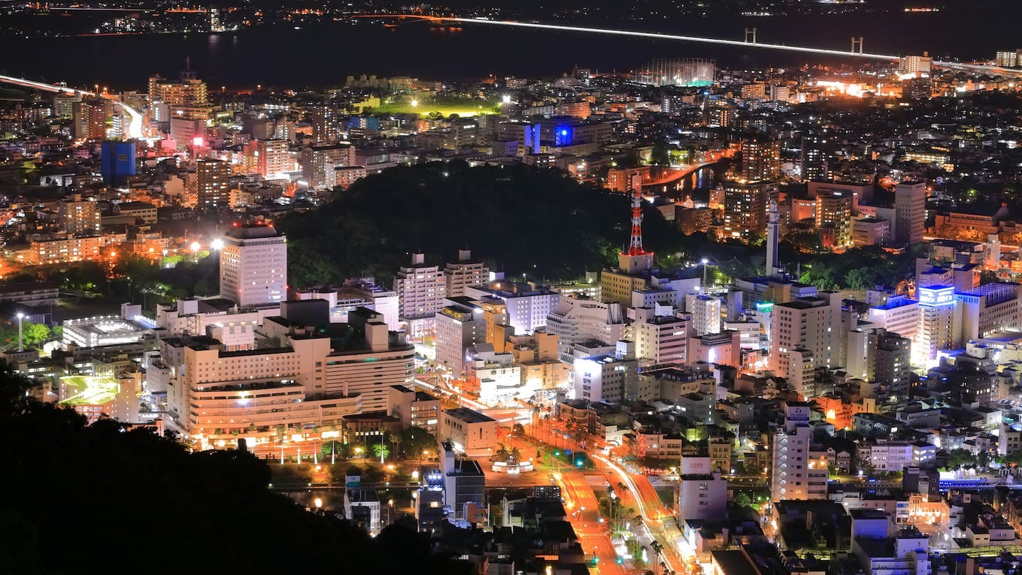 山頂まではロープウェイでわずか6分。しかも阿波おどり会館の5階にあるロープウェイ乗り場までは徳島駅から徒歩10分です。繁華街のすぐそばなので気軽に登ることができますよ。山頂からは徳島市街や淡路島、紀伊半島までを一望でき、まさに絶景!とくに徳島市の夜景はとてもロマンチックです。