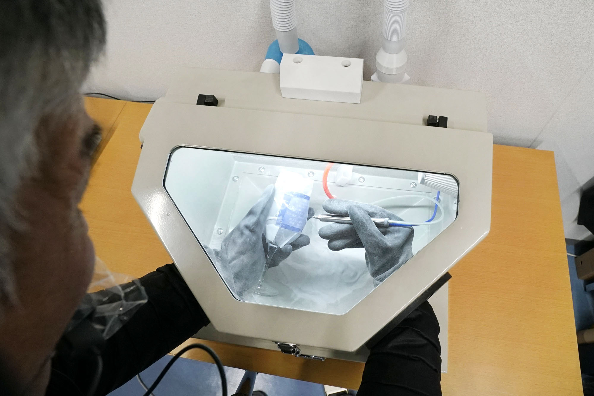 八王子市にある「工房のぐさ」は、サンドブラストという技法を使ってガラス製品にメッセージやデザインを彫刻する工房です。こちらでは、初心者でも気軽に楽しめる体験教室が人気。専用のシートを切り抜いてデザインを施し、グラスに砂を吹き付けて彫刻していくユニークな工程を体験できます。