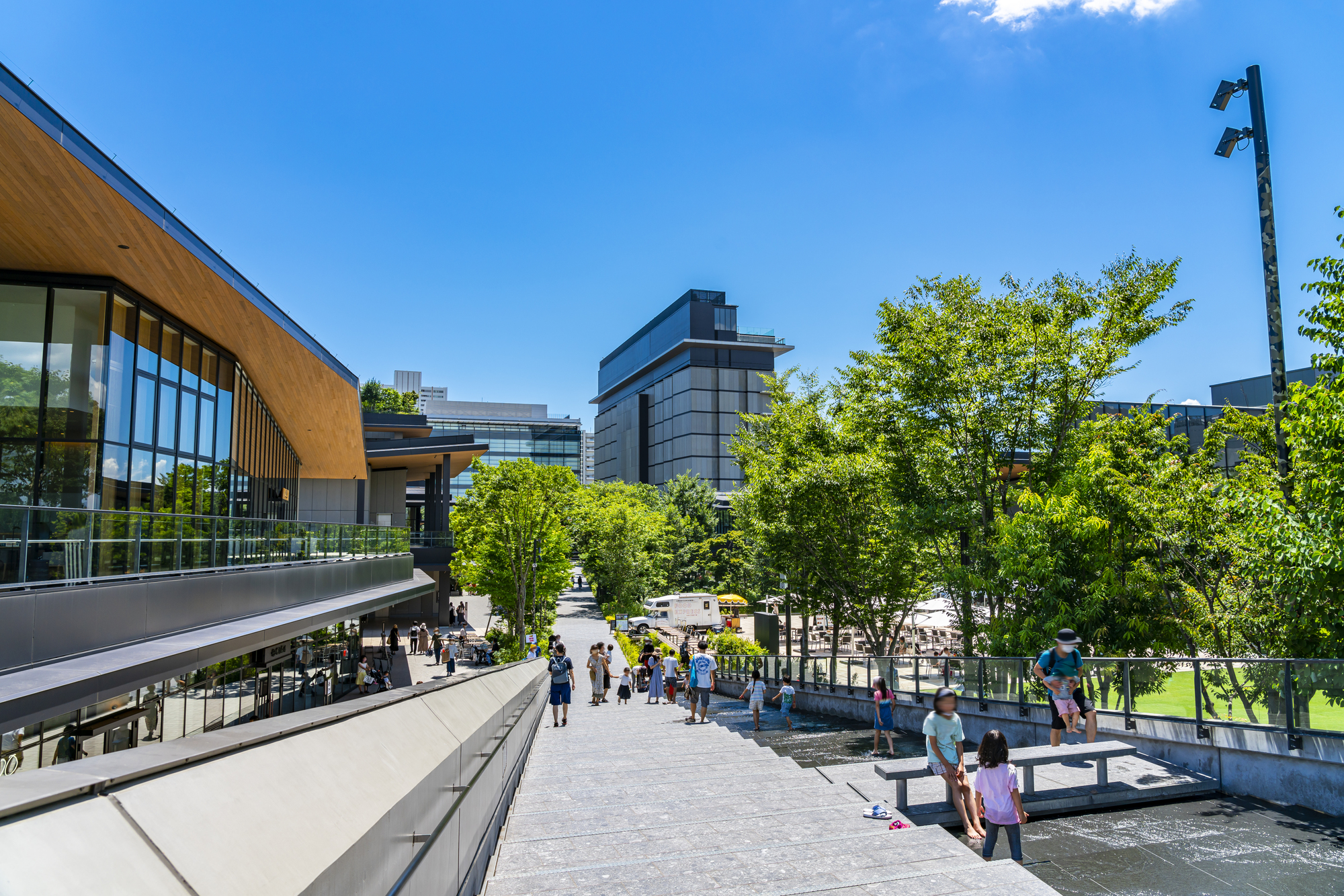 また、最上階の「SORANO ROOFTOP BAR(ソラノルーフトップバー)」も20時までは子どもの利用が可能で、3,300円のKIDSセットも提供されています。旬の食材を活かしたこだわりのメニューは、大人も子どもも満足することでしょう。さらに、ホテルの周辺施設「GREEN SPRINGS」内にもさまざまな飲食店や広場があるため、滞在中の食事や遊びの選択肢が広がるのも、子連れ旅行にはうれしい環境です。